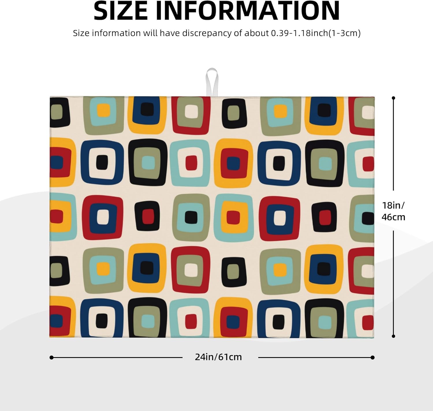 Mid Century Modern Retro Dish Drying Mat for Kitchen Counter Vintage Decorative Dish Drainer Rack Mats Washable Absorbent Reversible Microfiber Drying Pad Kitchen Accessories 18"x24"
