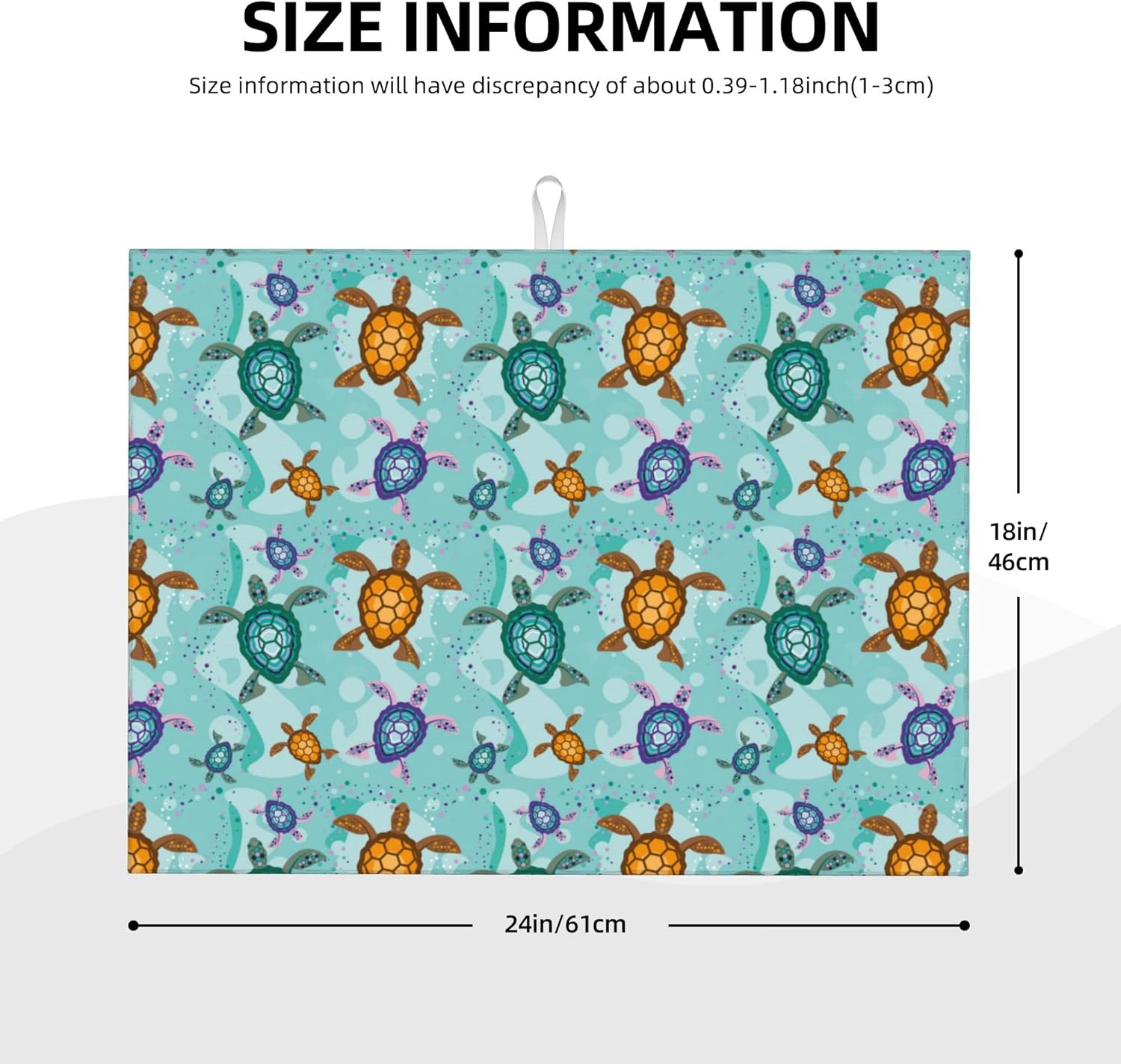 Cute Sea Turtle Beach Dish Drying Mat for Kitchen Counter Absorbent Reversible Ocean Themed Decorative Drying Pad Dark Kitchen Decor Dish Drainer Rack Mats 18"x24"