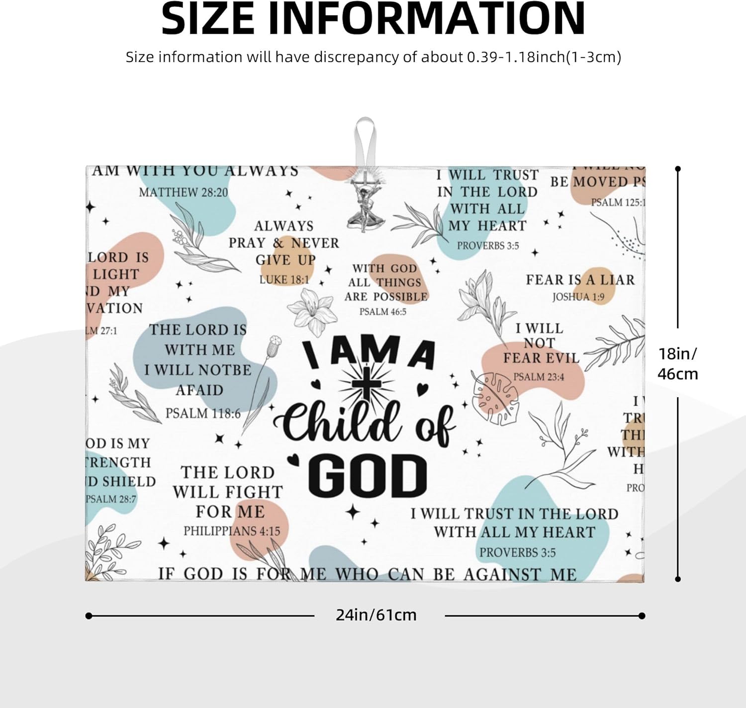 • Size: Christian Dish dry mat size is 16x18 inches or 18x24 inches