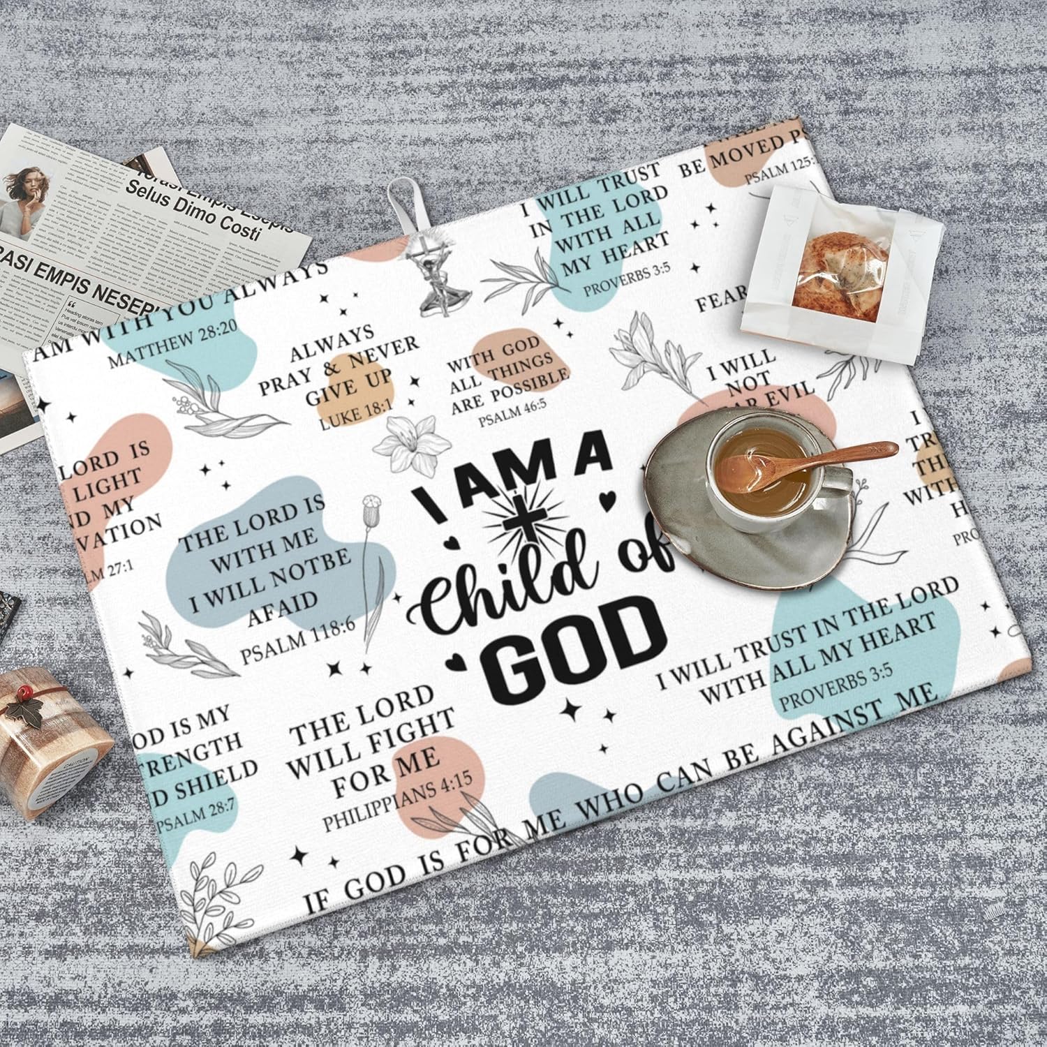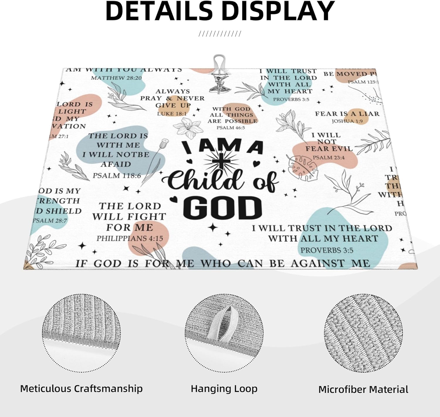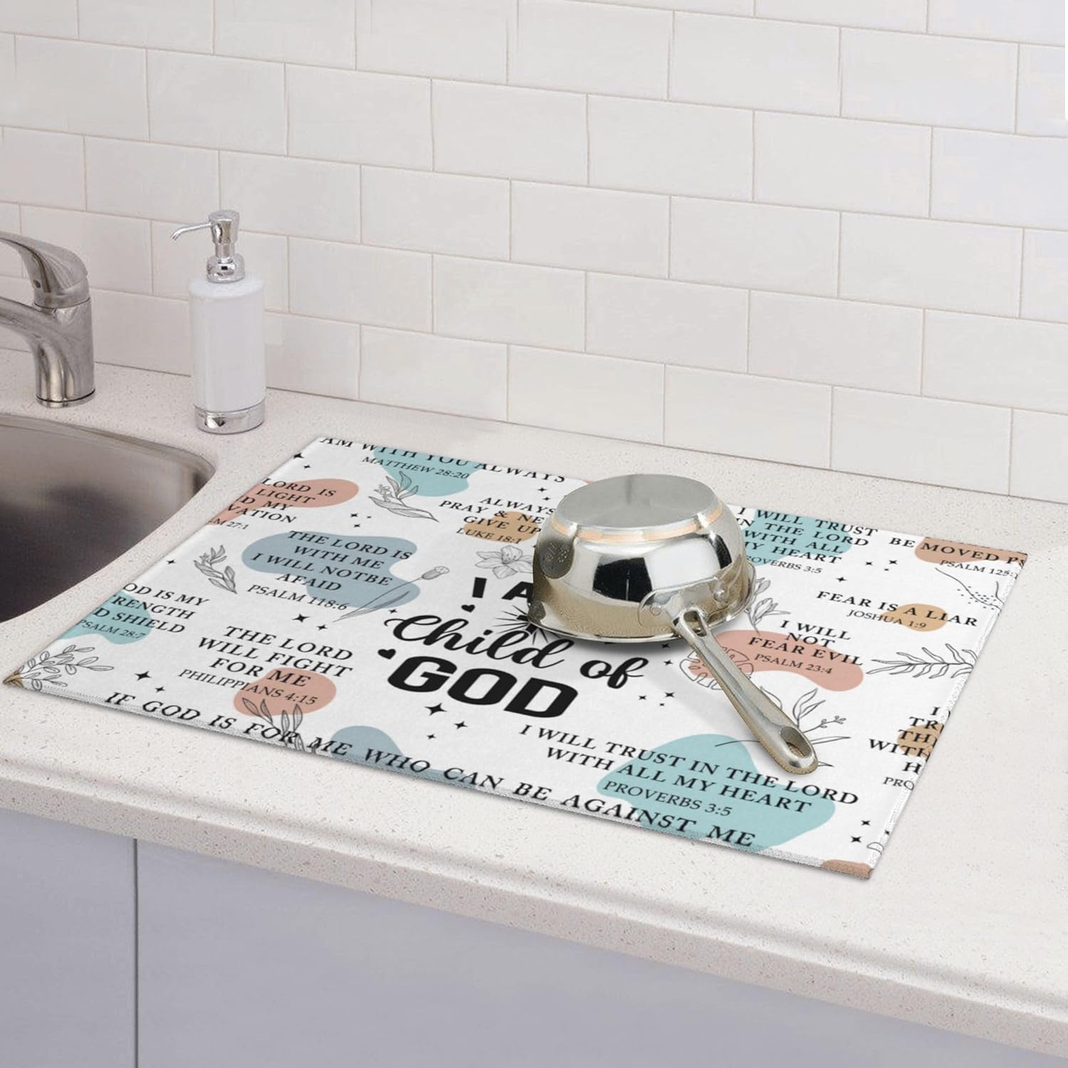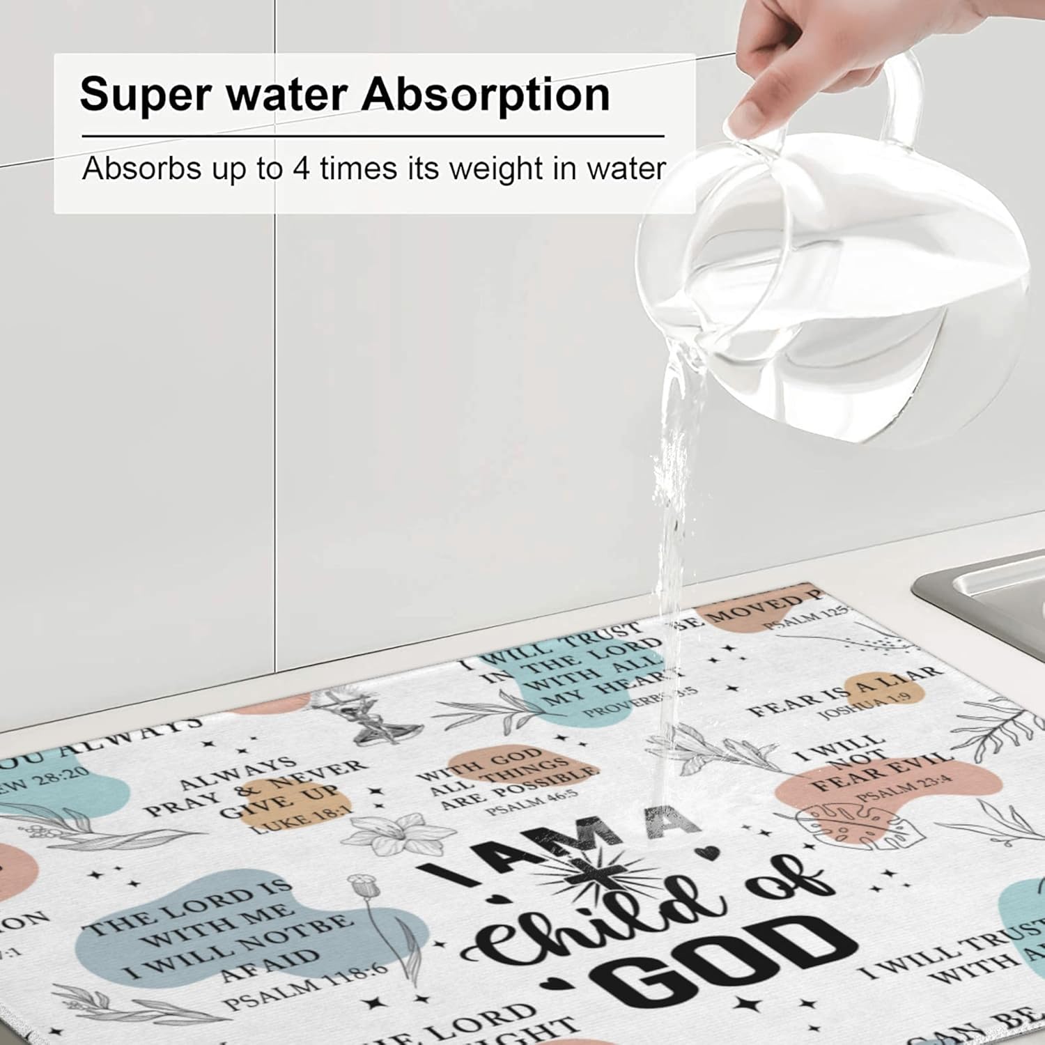 • Material: Bible Verse Dish drying pad is made of absorbing microfiber, and the middle is made of composite sponge, soft absorbent