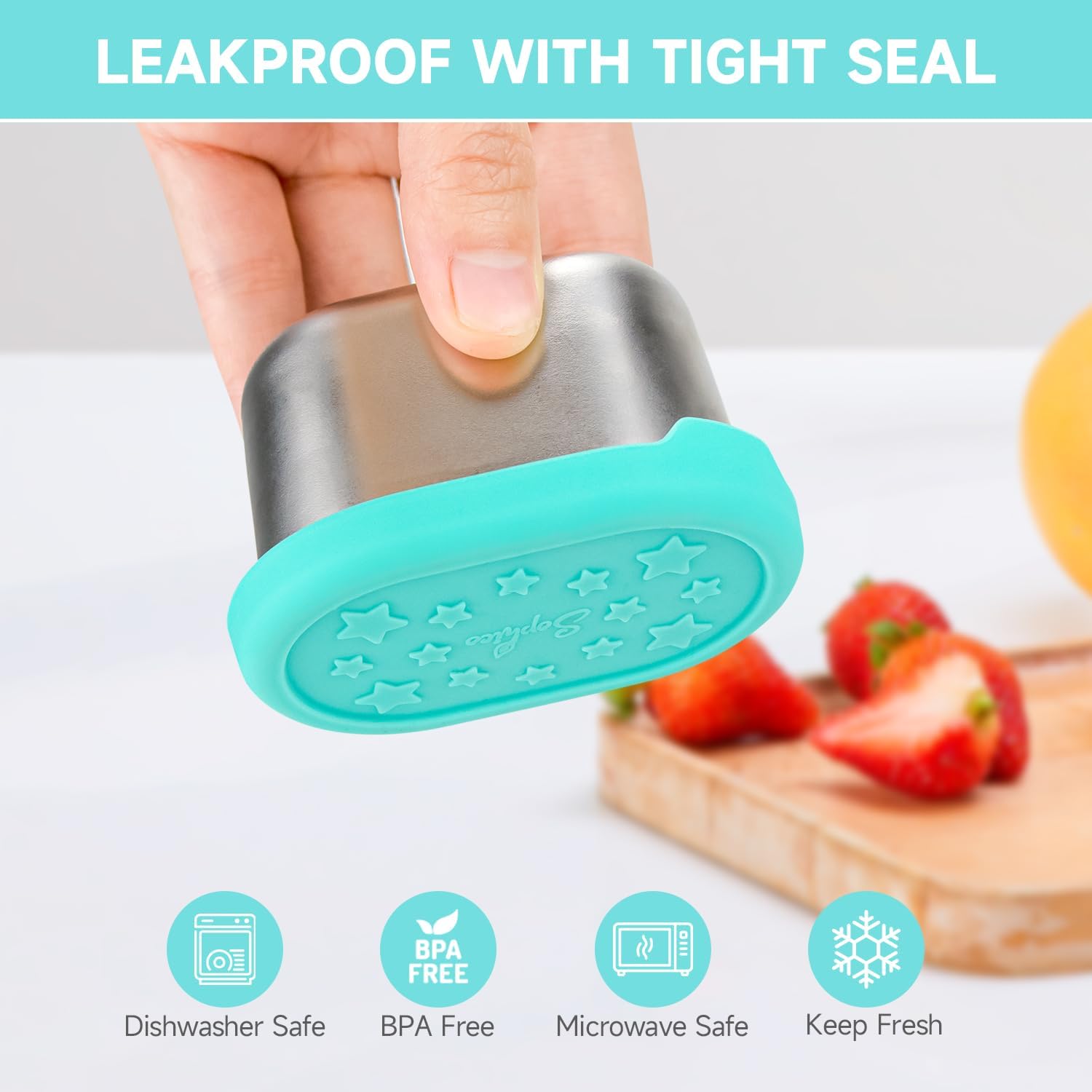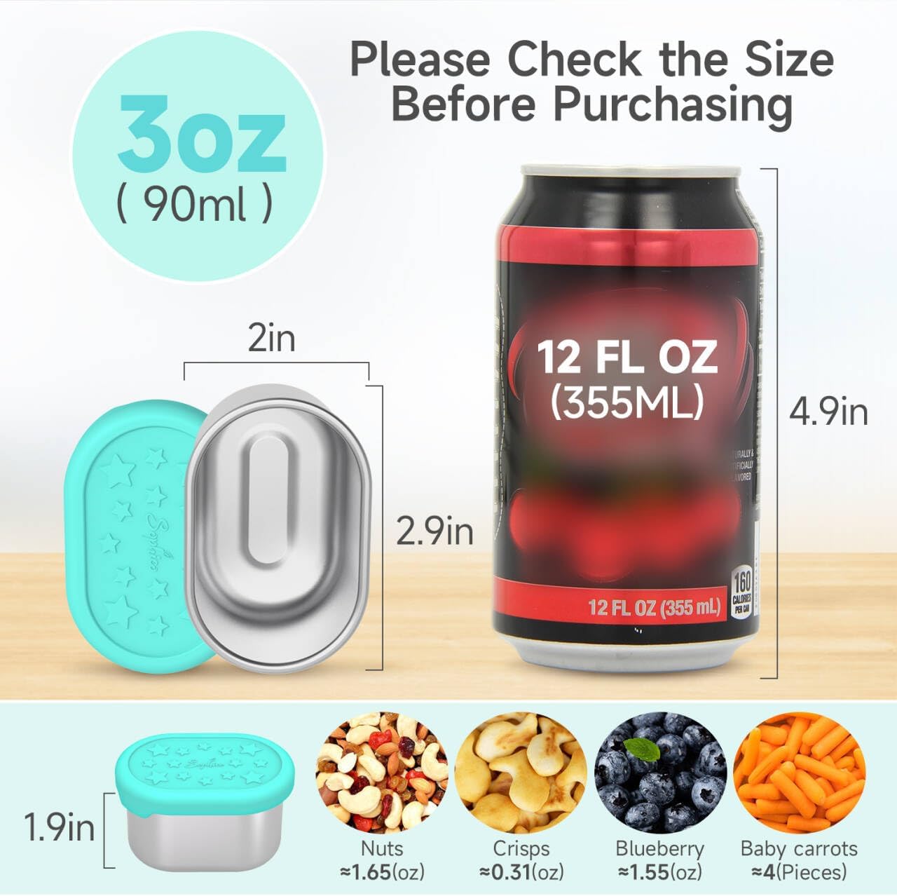 SOPHICO Stainless Steel Snack Containers for Kids, 3 oz Small Food Storage Container with Silicone Lid - Perfect 304 Metal Toddler Lunch Box for Daycare and School, Leak Proof (3oz, 6 PACK)