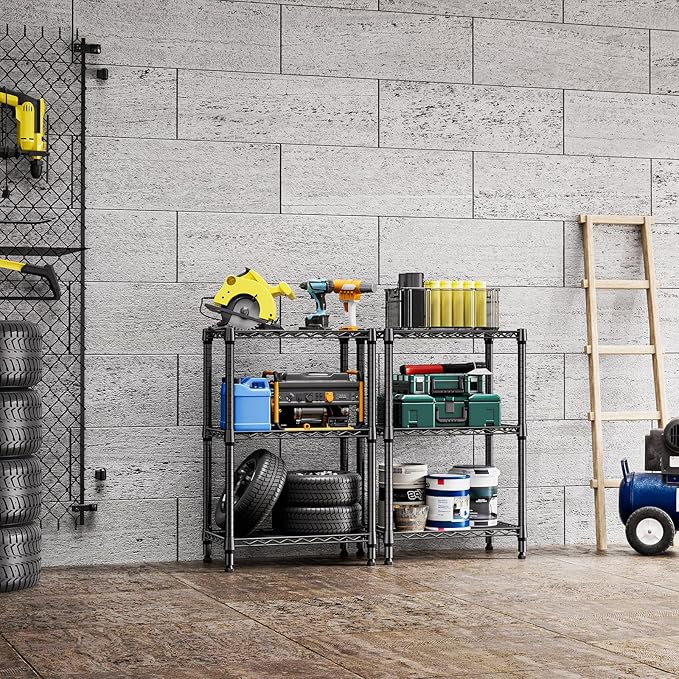 750 lbs 3 Tier Shelf Metal Storage Shelves Shelving Wire Rack Heavy Duty Closet Organizers for Garage Kitchen Bathroom Laundry Black 13.8" D x 23.6" W x 35.5" H