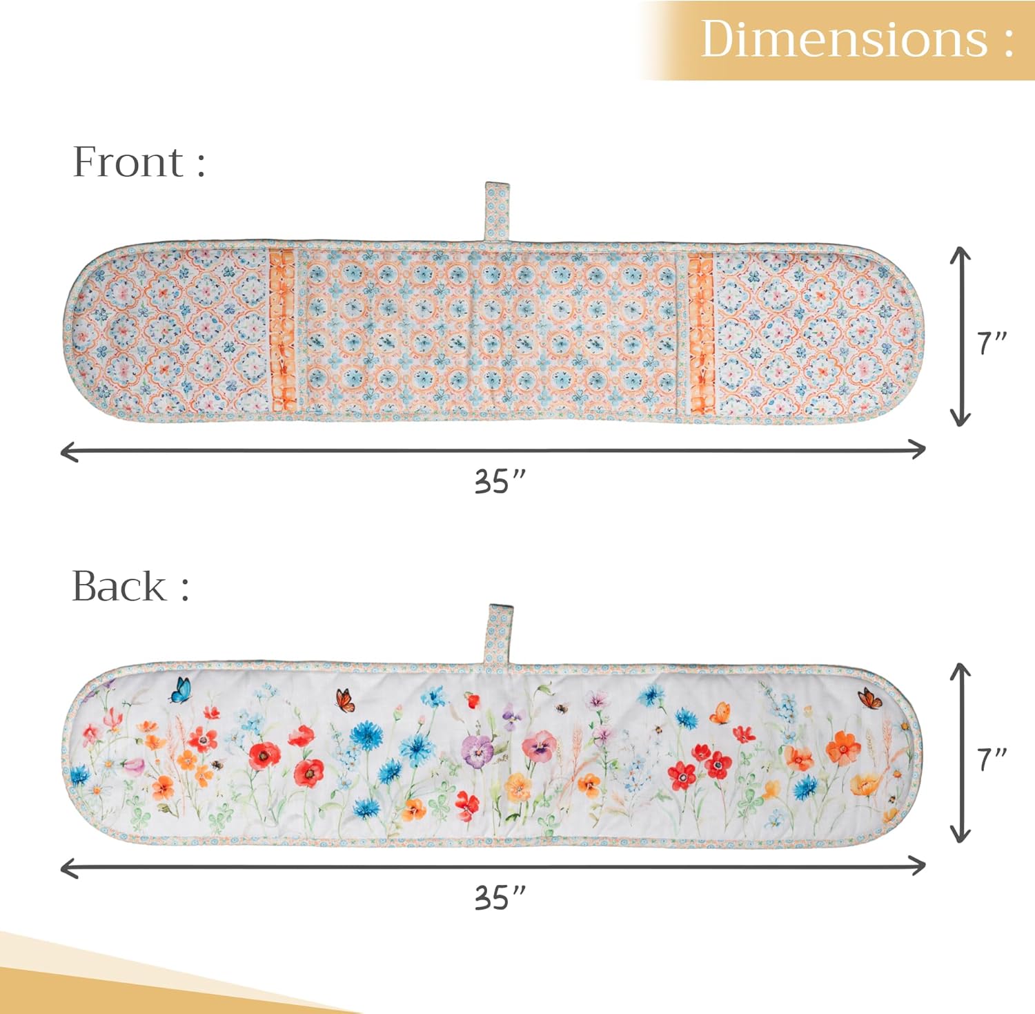 Maison d' Hermine Double Oven Mitts 100% Cotton 7"x35" Double Oven Mitt Heat Resistant BBQ Cooking Gloves with Loop, Baking, Grilling, Home, Kitchen, Handling Hot Pans Spring Summer (Summer Whisper)