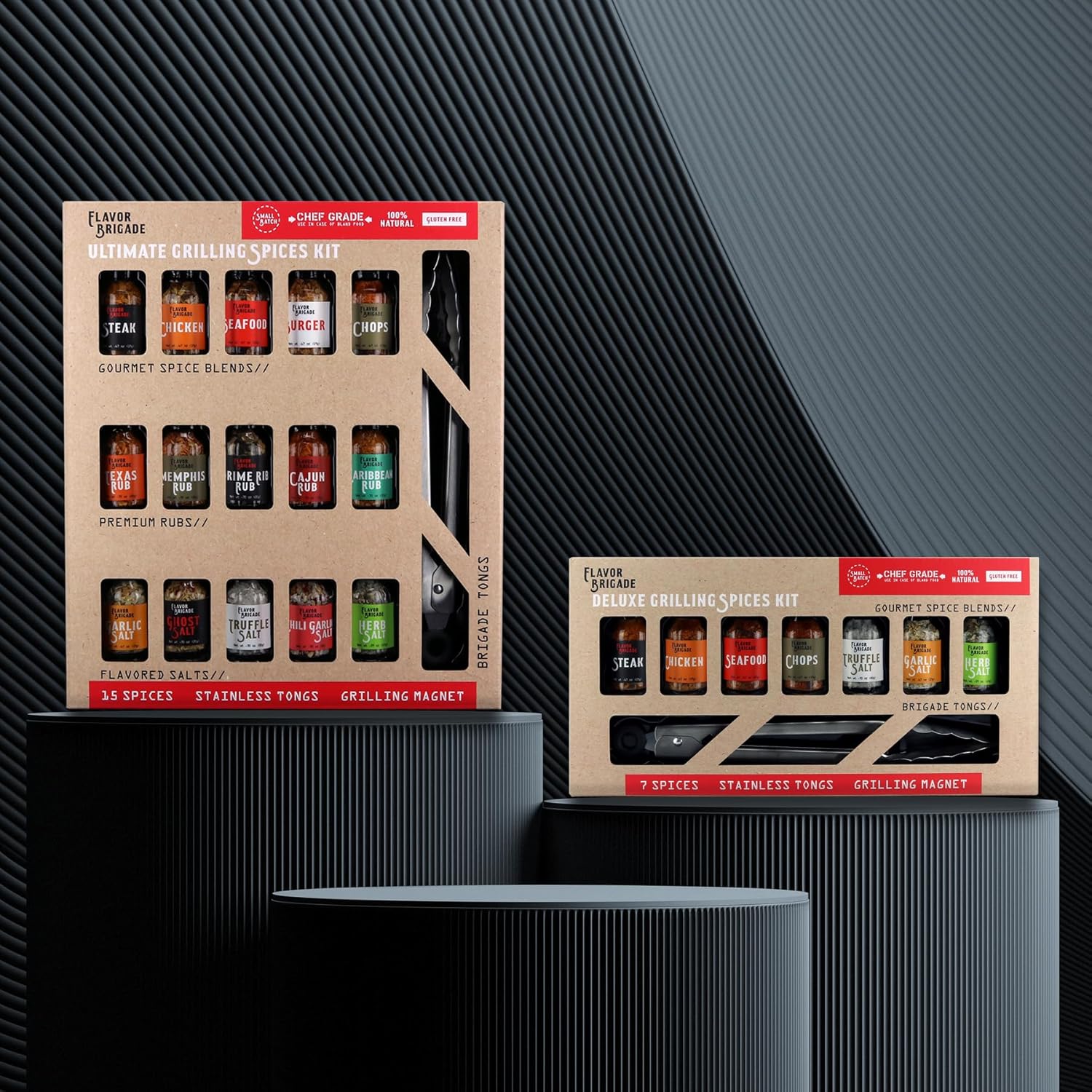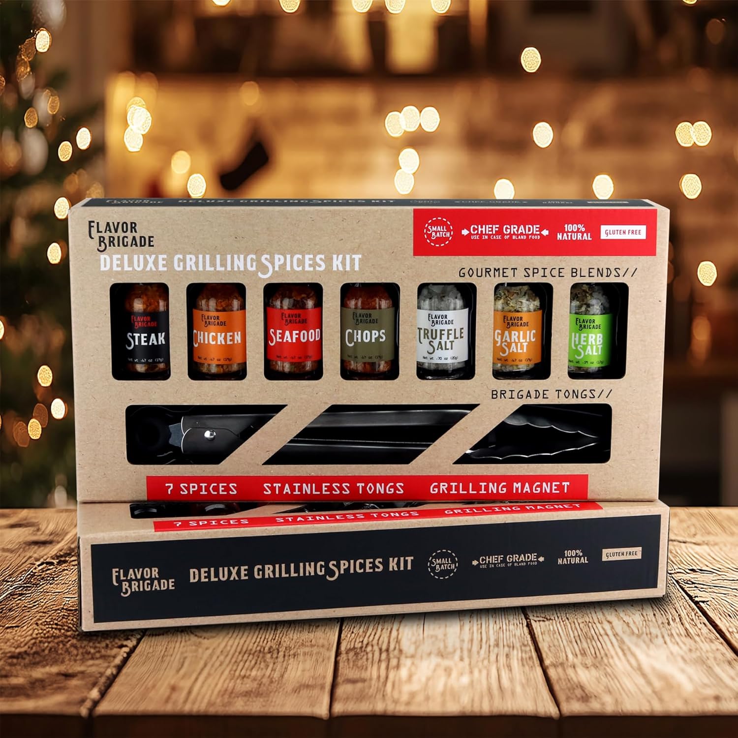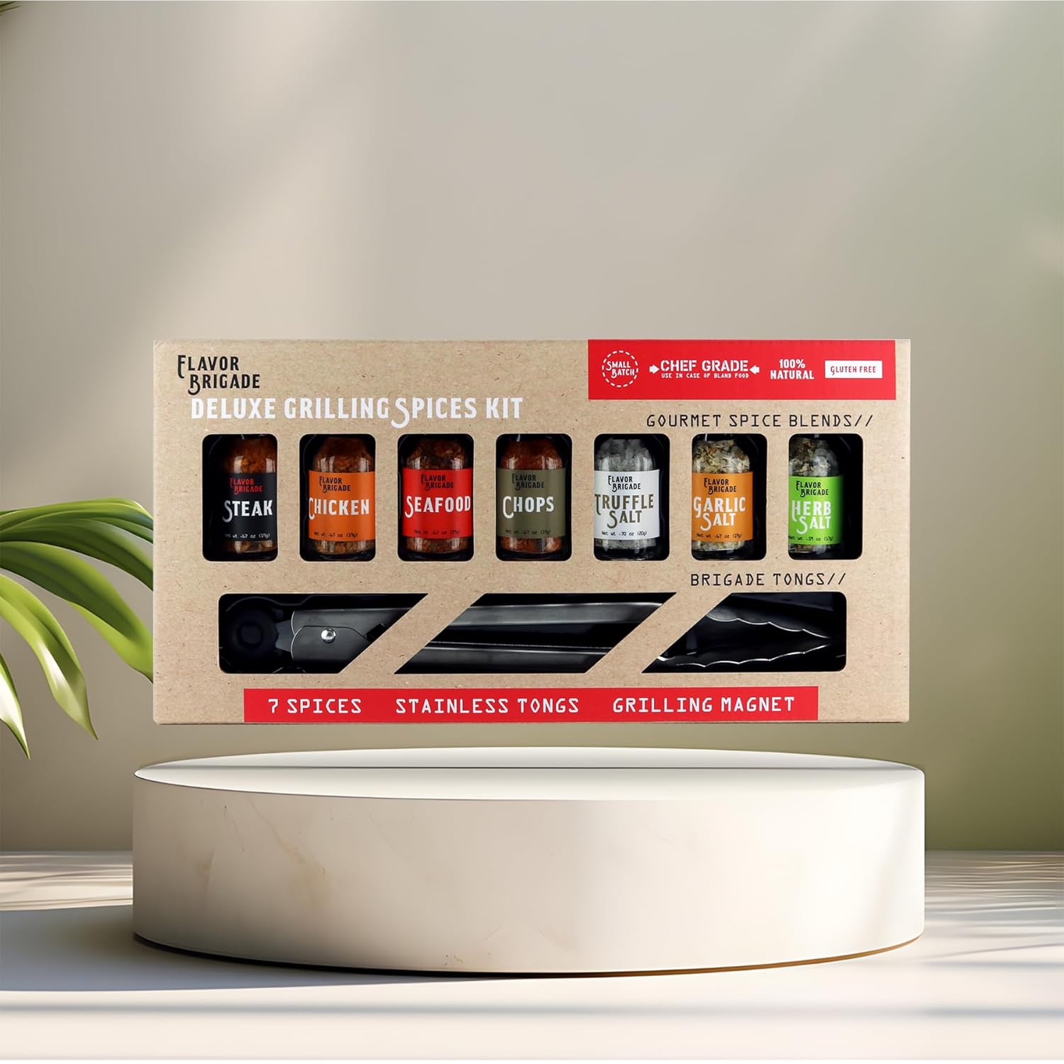• Gift Ready: Includes 9 items, Spice Blends, Flavored Salts, Rubs, 9 inch Stainless Tong, Grilling Temp/Time Magnet, Gift Box.
