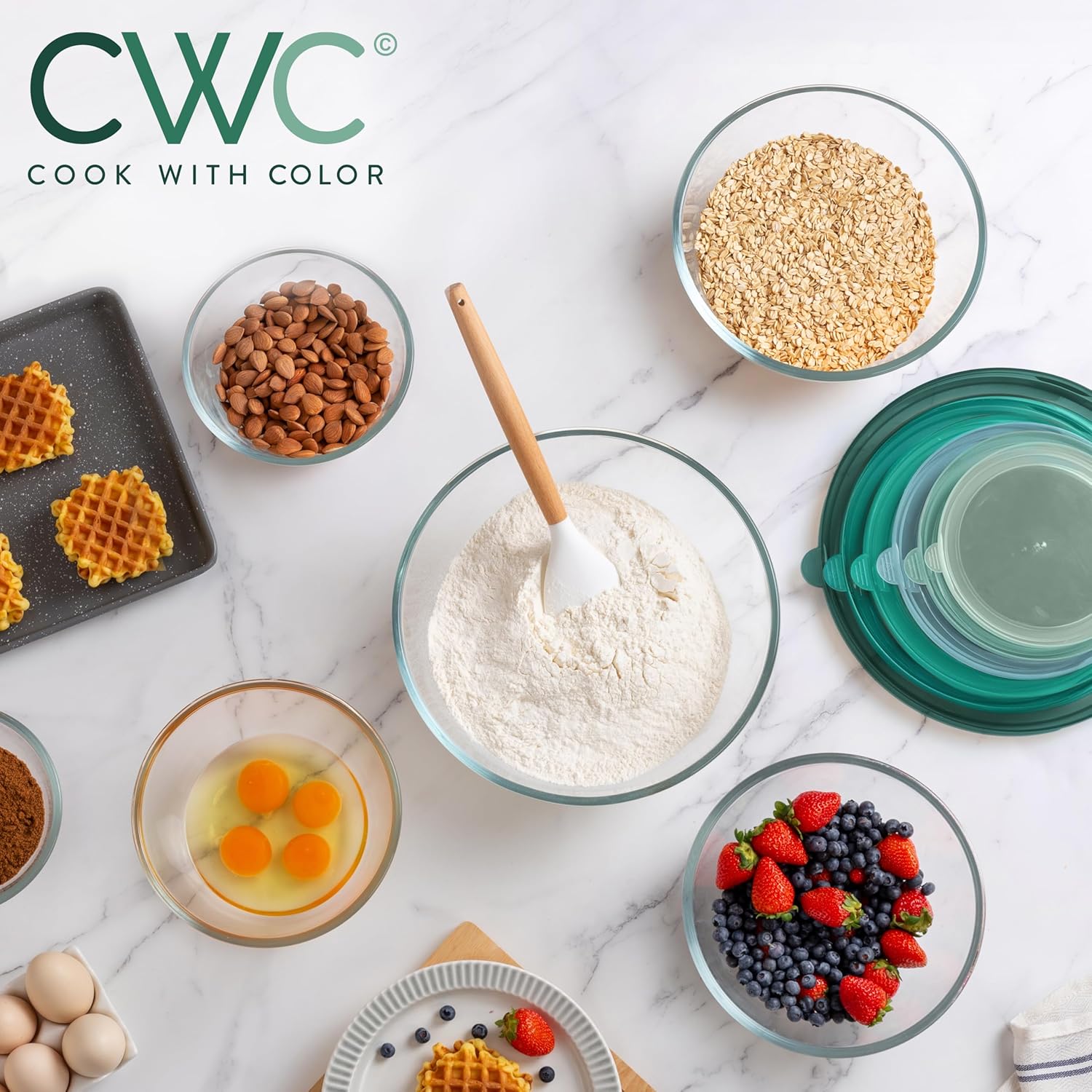 COOK WITH COLOR 12 Pc Glass Mixing Bowl Set with Lids – Borosilicate Glass Nesting Bowls for Cooking, Baking and Meal Prep, Sage