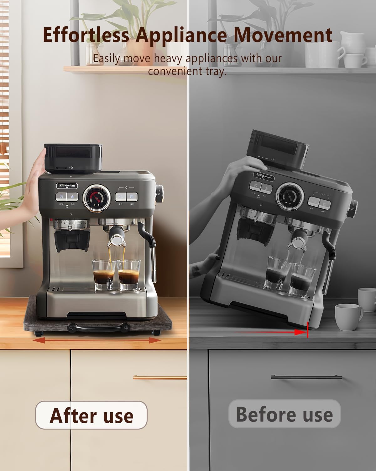 • Long-lasting & Sturdy: Our Appliance Tray supports up to 40 lb; it’s a sliding coffee tray for countertop that blends with any decor; a durable coffee slider for countertop, combining strength and style for your kitchen or dining area