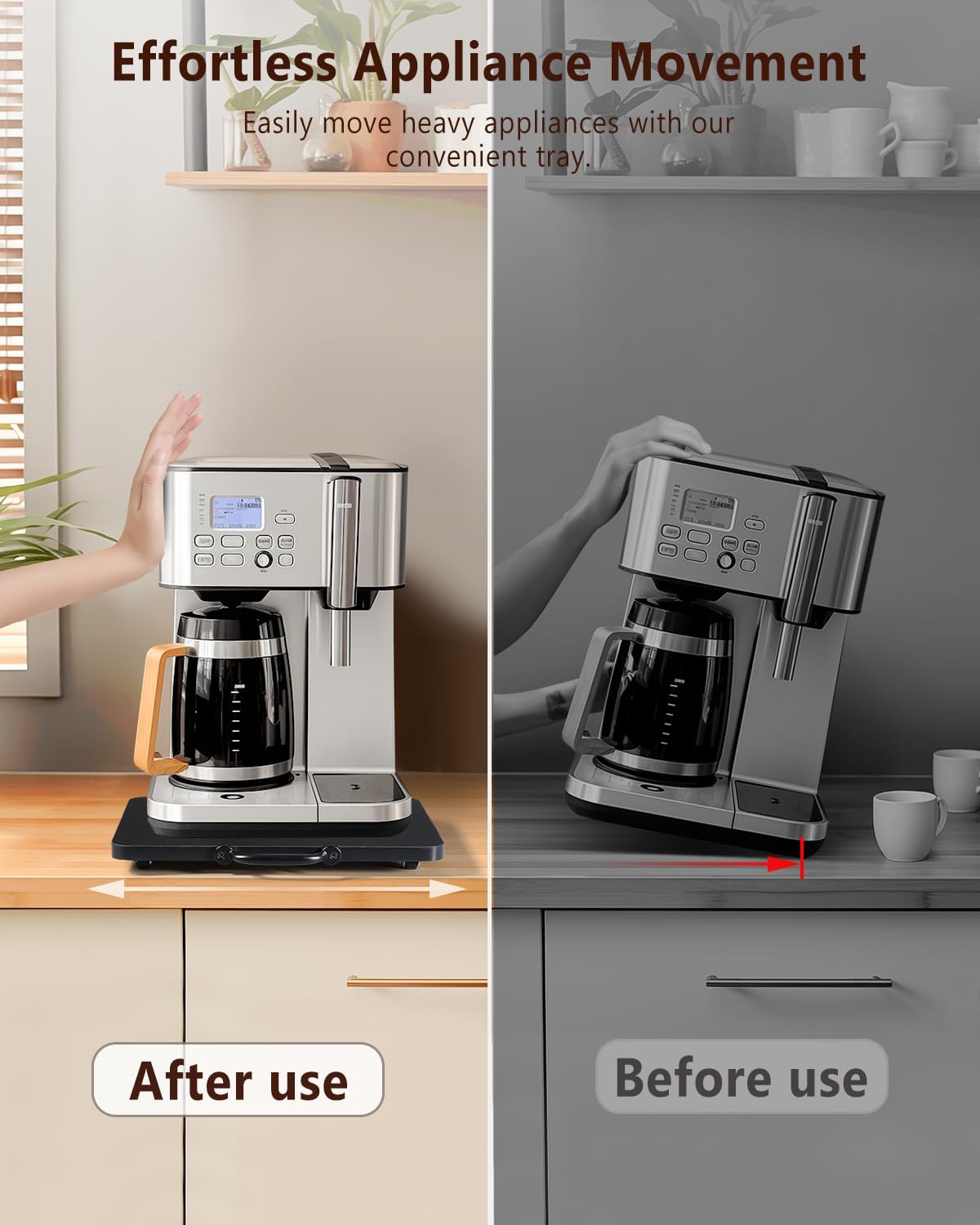• Streamline Appliance Handling: Effortlessly move appliances with our Appliance Tray; equipped with appliance sliders for kitchen appliances; ideal as a coffee tray for countertop; ensures quiet, easy movement and a smoother kitchen experience