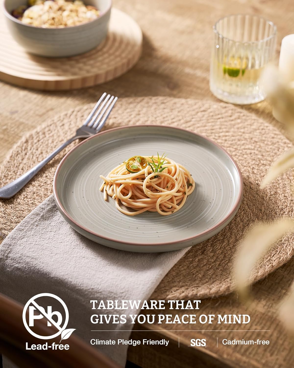 • 【SCRATCH RESISTANT】Our glaze is fired at 2340℉ for 13.5 hours to form a strong scratch resistant surface. No need to worry about scratches from your forks or knives.