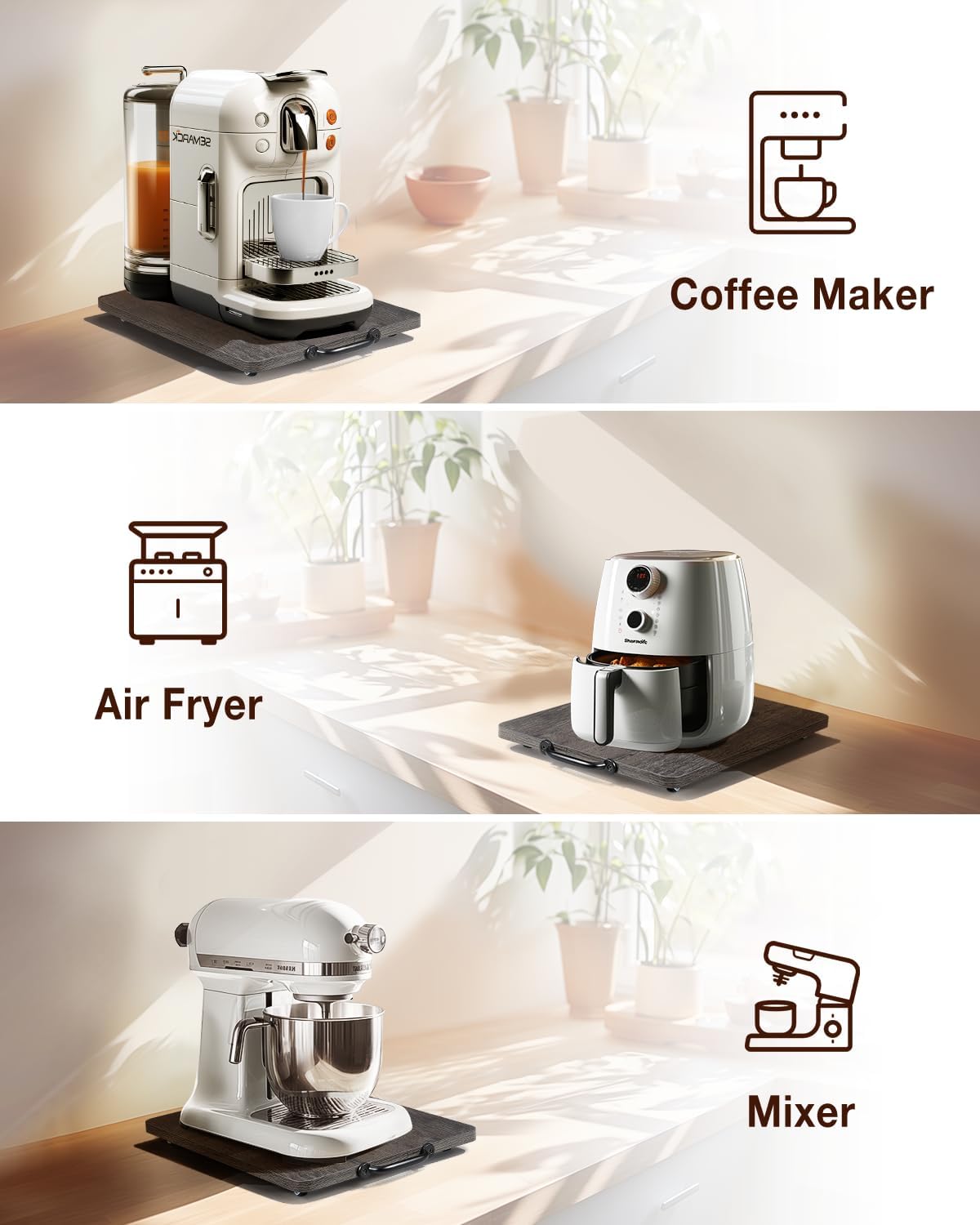 • Versatile Surface Compatibility: Suitable for marble, tile, wood, and glass, our Appliance Tray has a smooth, easy-to-clean finish; it's an ideal small appliance slider and countertop appliance slider, ensuring secure and smooth movement on any surface