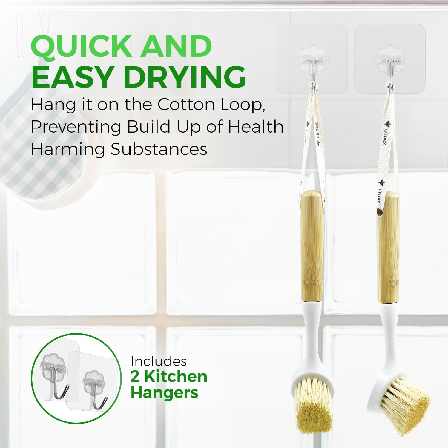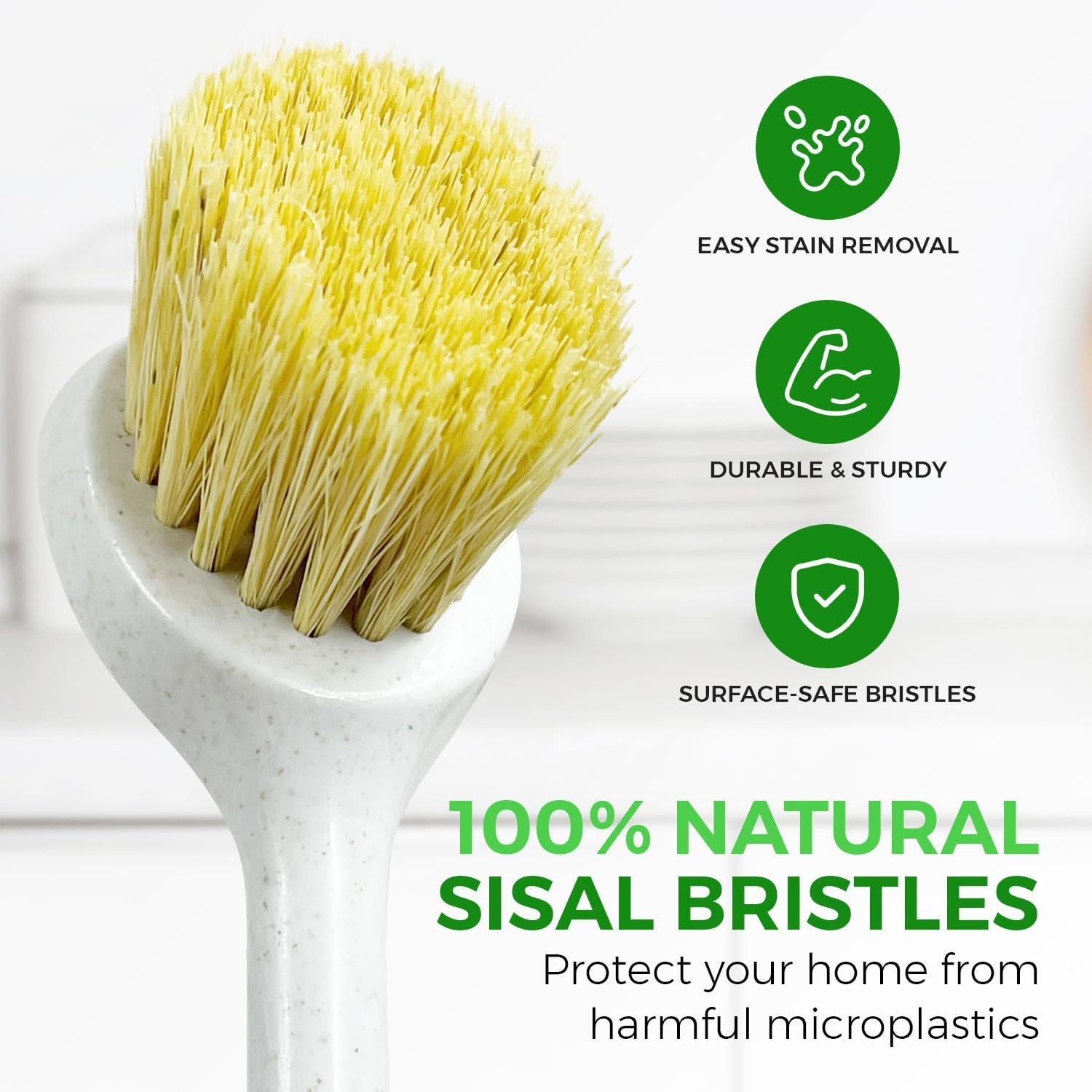 • NATURAL SISAL DISH BRUSHES - Make an eco-conscious choice with an AIRNEX dish scrub brush with handle. Its sturdy head made out of wheat straw & high-density plastic-free sisal bristles along with bamboo handle can outlast regular dish brushes, without getting stinky.