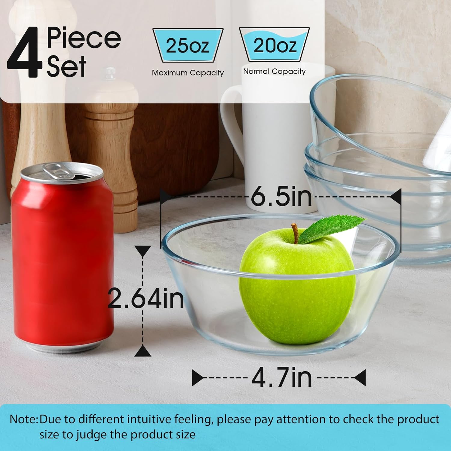 • 【Multifunction and Convenient】This 25oz Glass cereal bowls Set is perfect for a variety of kitchen tasks, such as mixing, prepping, and serving. Perfect for cereal or small portions of fruits serving bowls, food preparation, this glass bowl can meet all your needs.