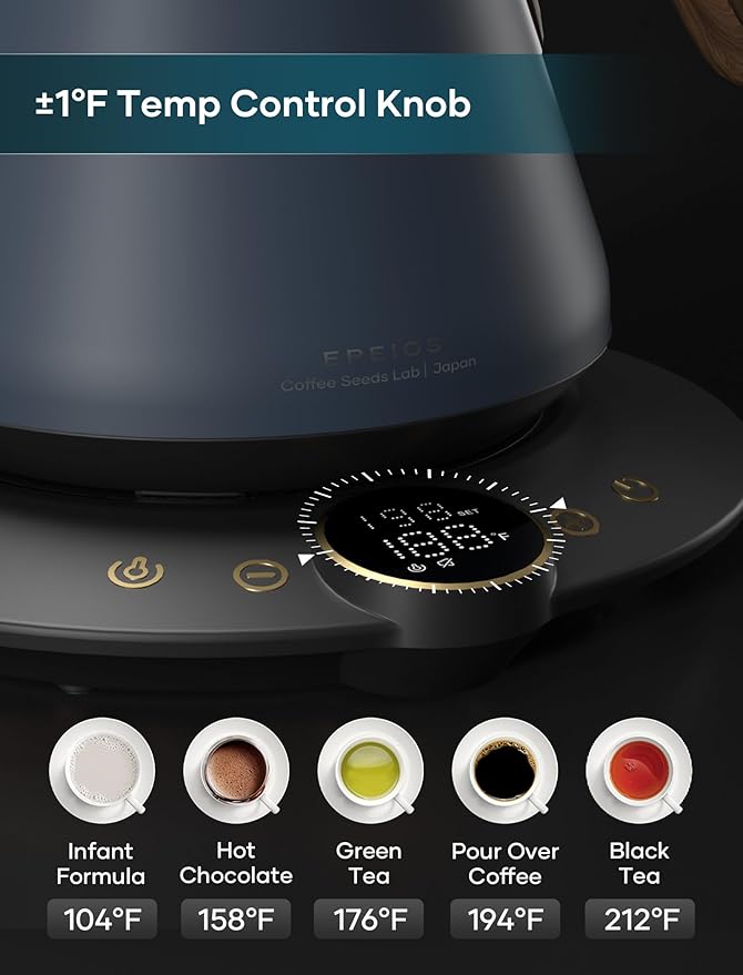 • ±1℉ Precise Temperature Control – Smart power adjustment keeps water within ±1℉ of your target, so every brew is café-precise and full of flavor.
