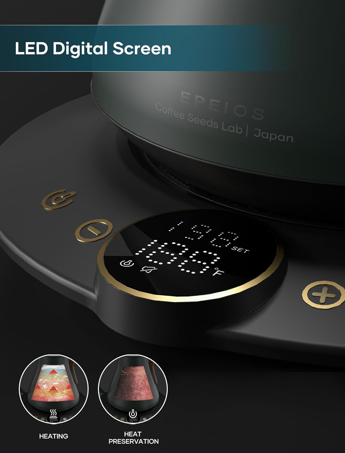 Gooseneck Electric Kettle with ±1℉ Temperature Control for Pour Over Coffee & Tea, Quick Heating, BPA-Free Stainless Steel, Built-in Brew Timer, 1500W/0.9L (Forest Green)