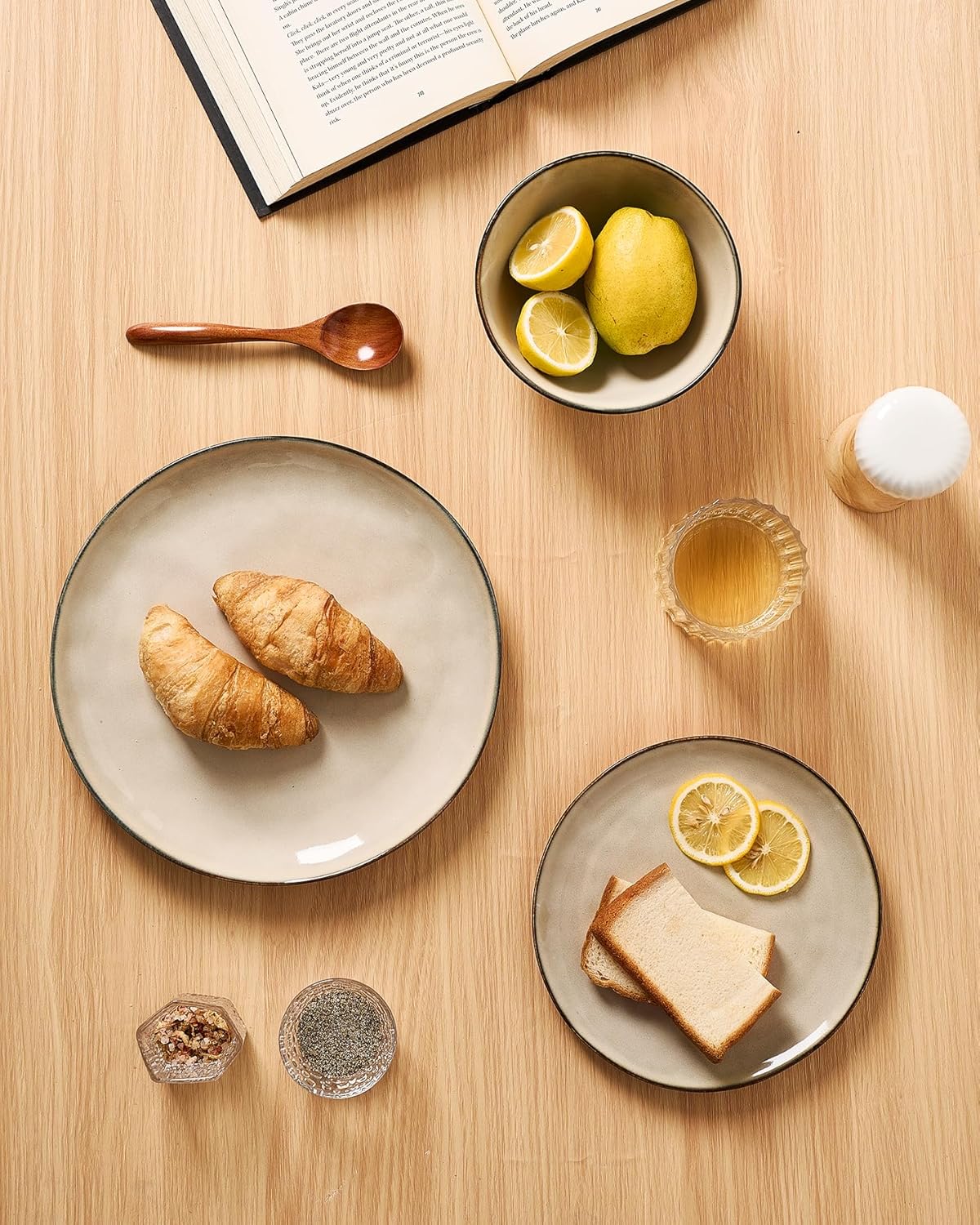 • 【18-Piece Dinnerware Set】This dish set services for 6 that includes six 10.25 inch dinner plates, six 8 inch salad plates and six 6 inch cereal bowls.This plates and bowls set can meet the need of your family well