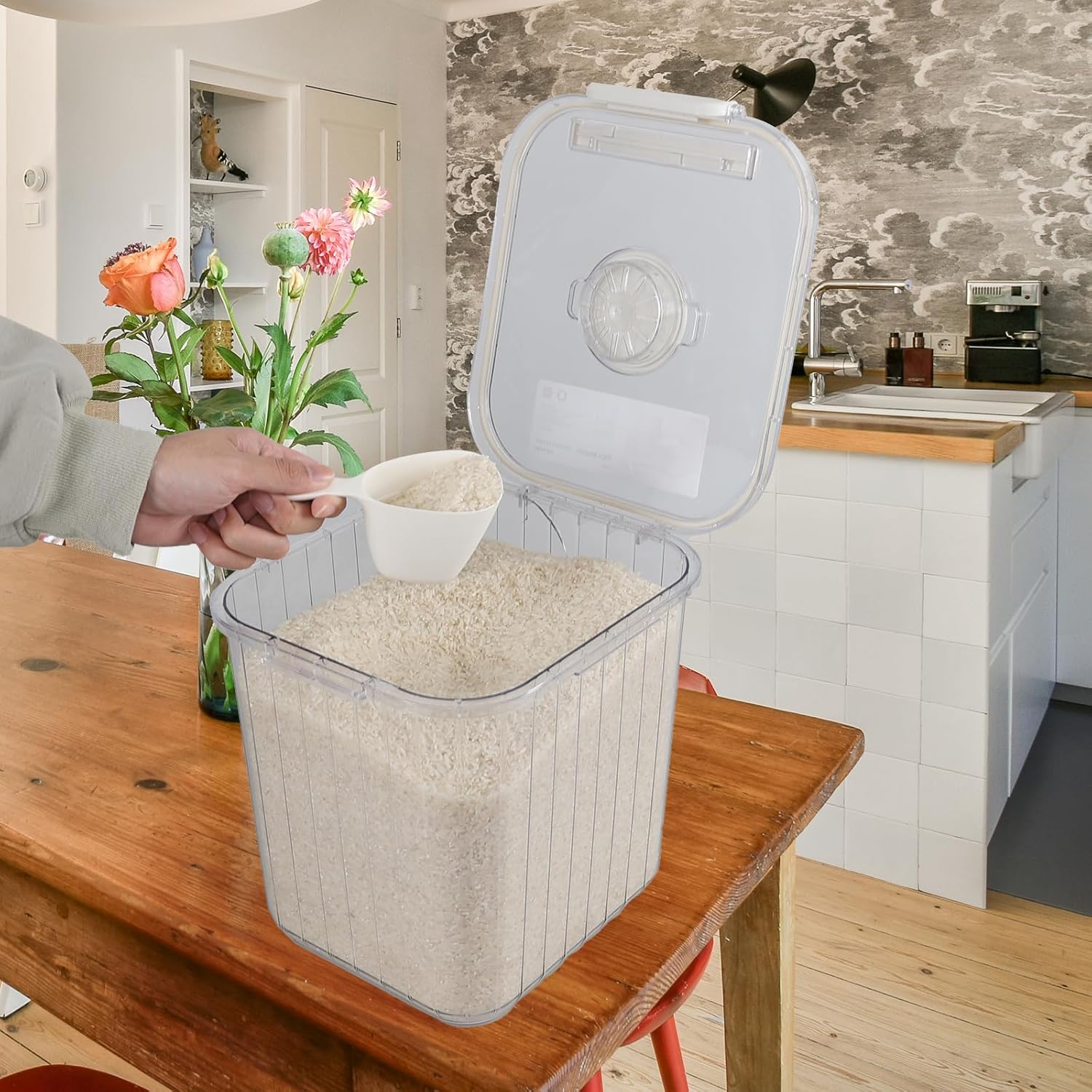 Plastic Clear Food Cereal Containers, 22Lbs Rice Cereal Container with Spoon for Kitchen Pantry Organization and Storage