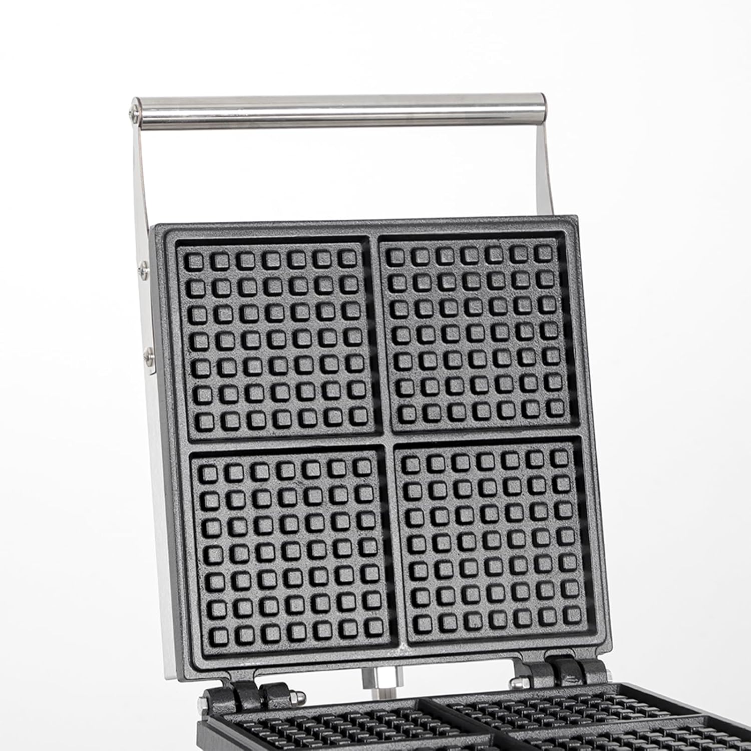 Industrial Waffle Maker 1750W Square Waffle Iron, 110V Non-Stick Waffle Baker Machine, 4 Slice Belgian Waffle Maker Teflon-Coated Baking Pans Stainless Steel Body,50-300℃/122-572℉ Adjustable