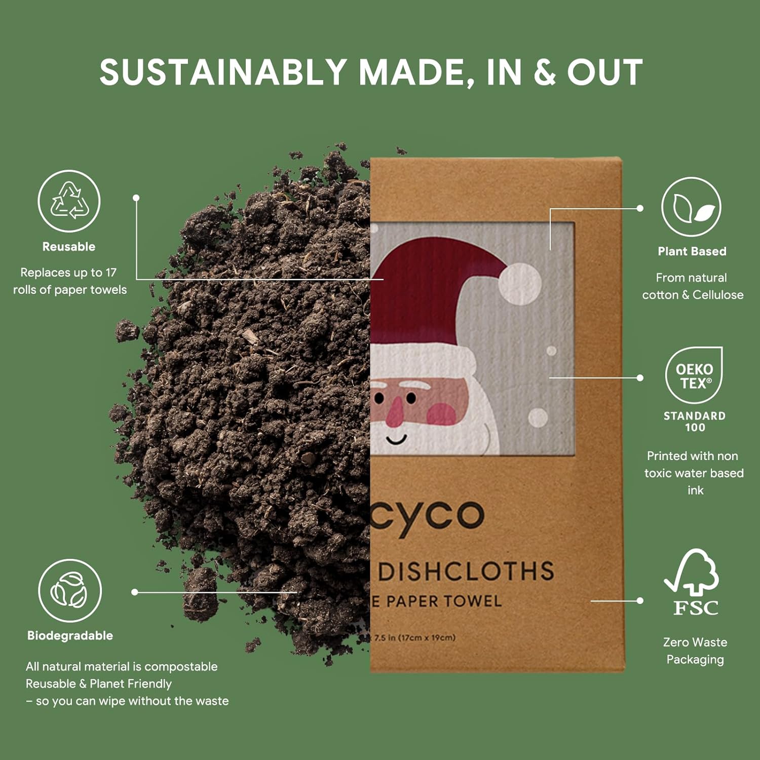 • Plant-Based & Biodegradable: Our 8” x 7” swedish dishcloth is 100% biodegradable, vegan, and free from harmful chemicals. Made from FSC certified cellulose and cotton fibers, it can decompose naturally in just 6-8 weeks, making it your best conscious choice for a greener lifestyle.