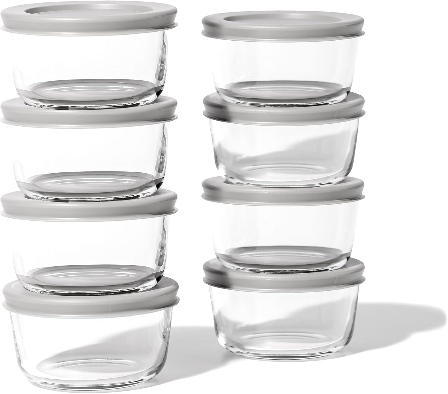 • 16-Piece Set Includes: (8) 7-Ounce capacity glass containers with (8) BPA-free, airtight lids for leakproof food storage and freshness.