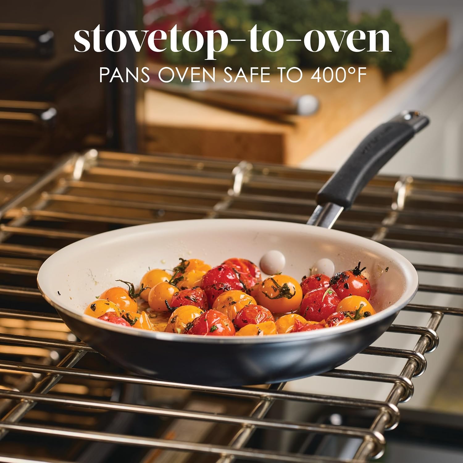 • HEALTHY CERAMIC NONSTICK: High-quality nonstick ceramic on cooking surfaces and coated rivets for easy-peasy food release and cleanup. Plus, you don’t need as much butter or oil when cooking on ceramic, making dishes that much healthier