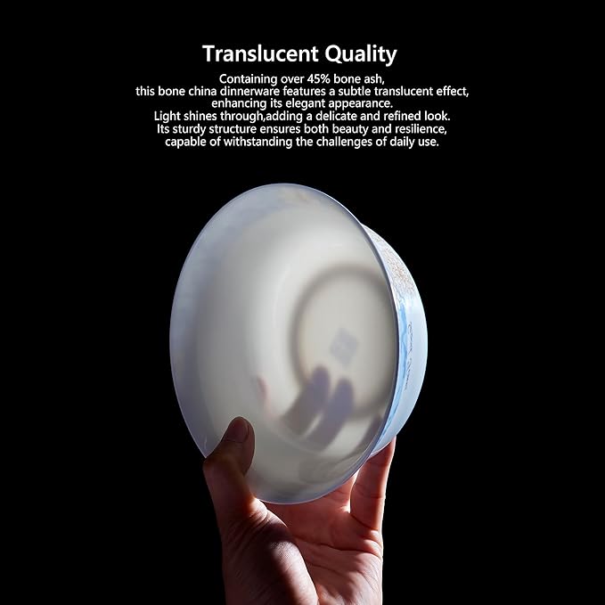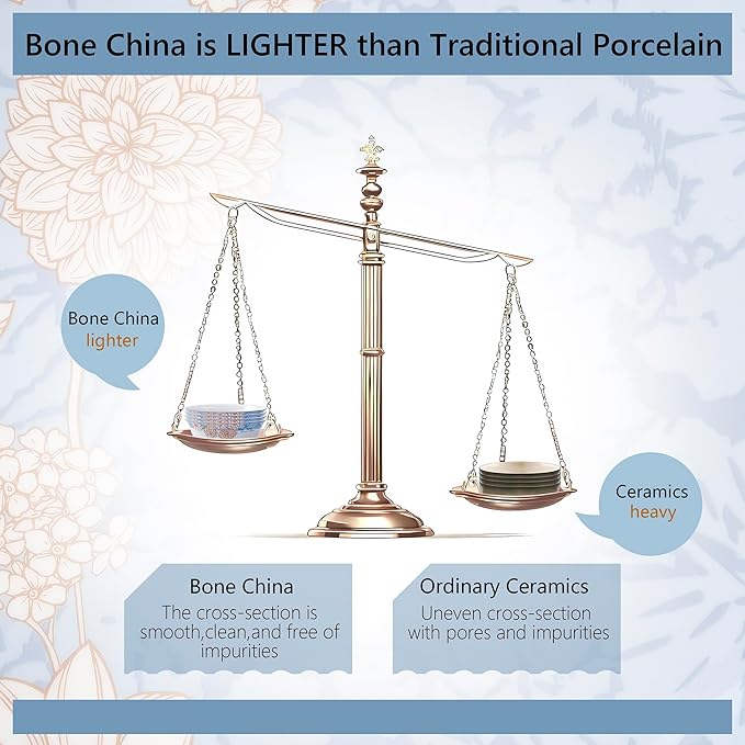 • Superior Durability and Craftsmanship Crafted from premium bone china, this set is built to withstand the rigors of everyday use while retaining its pristine appearance. Each piece is meticulously fired at a high temperature of 1800°C, providing remarkable resistance to cracks, stains, and scratches, ensuring it remains stunning and functional for years to come.