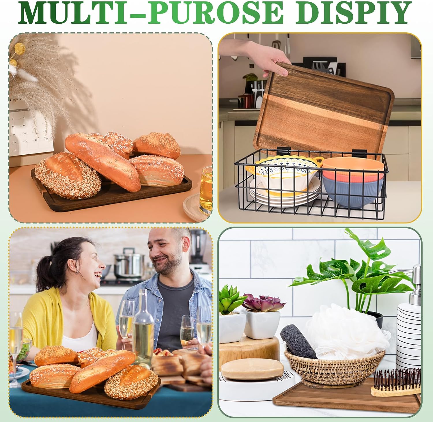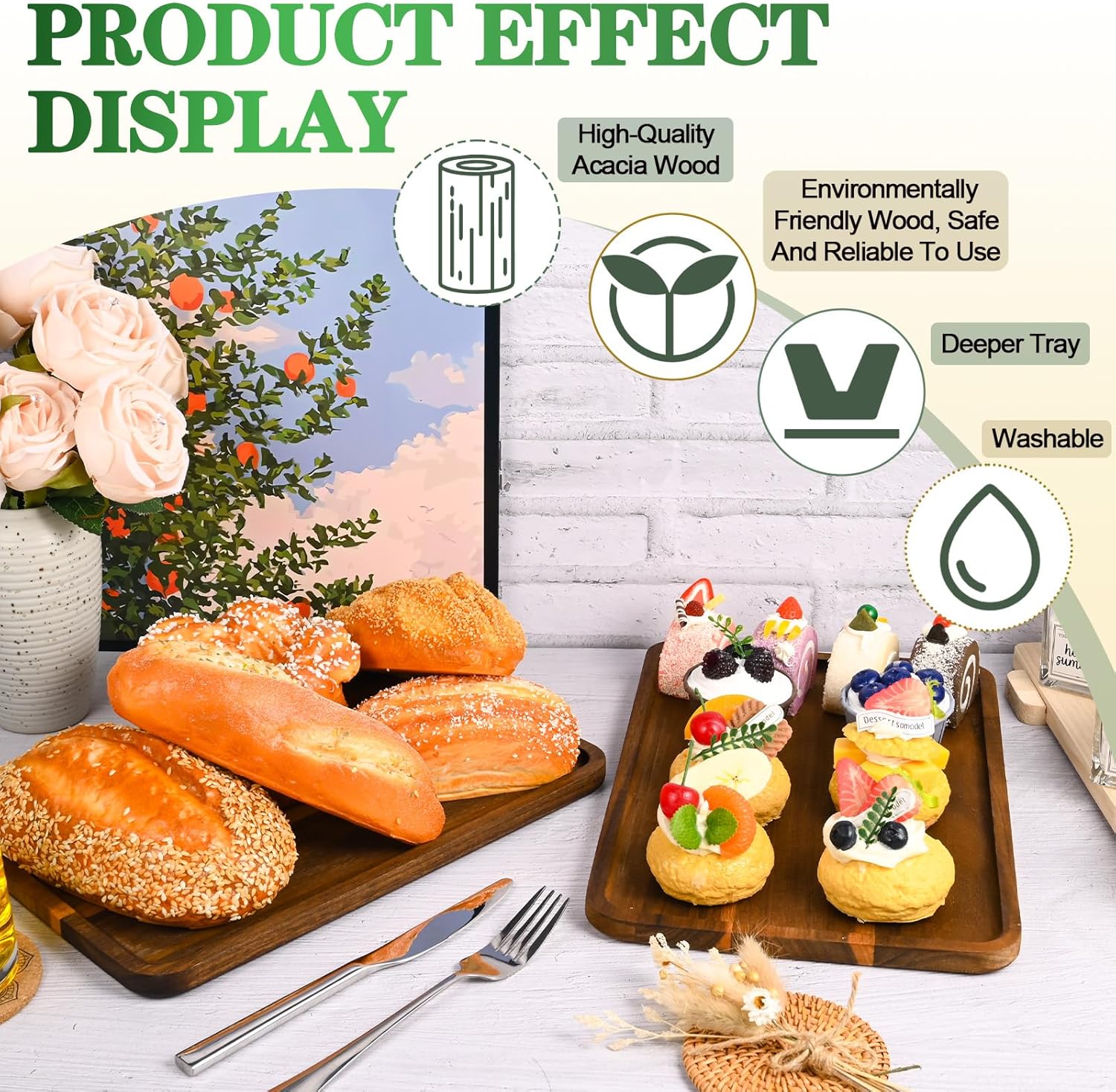 • LARGE SIZE DESIGN: Includes 2 pieces 13 x 9 x 0.6 Inches rectangular wooden serving trays. This wood serving board is enlarged for a larger area to hold more food, perfect for serving fruits, cakes, breads, cookies, sushi, desserts, vegetables, charcuterie, appetizers and more!