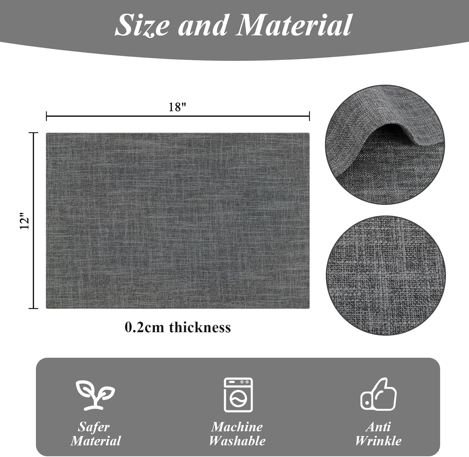 SHACOS Woven Fabric Placemats Set of 4 Heat Resistant Place Mats Non Slip Washable Double Layer Cloth Placemats Reversible Table Mats Kitchen Dining Table Decor (4, Dark Grey)