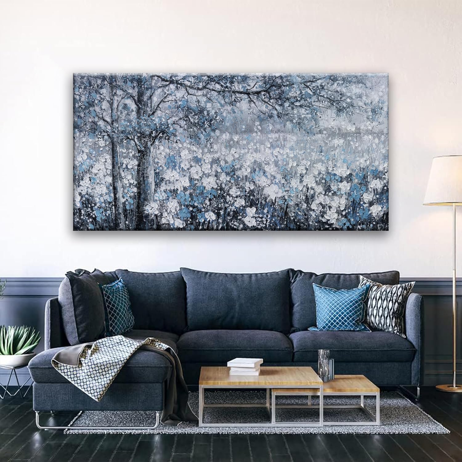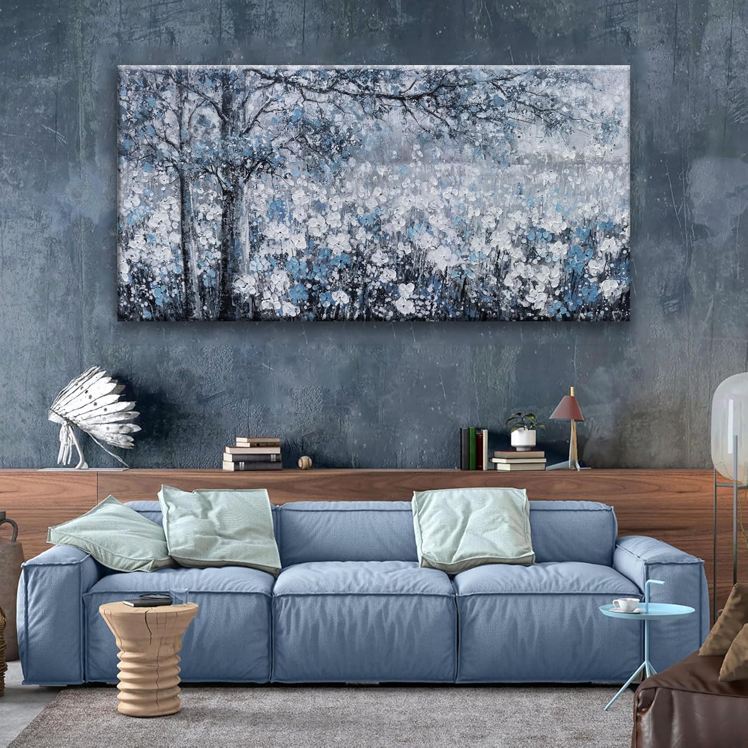 HXSRQ FA ART Canvas Wall Art Modern Wall Decor 29x58 Inches Large Wall Art Blue And White Tree Flower Landscape Picture Artwork For Bedroom Home Office
