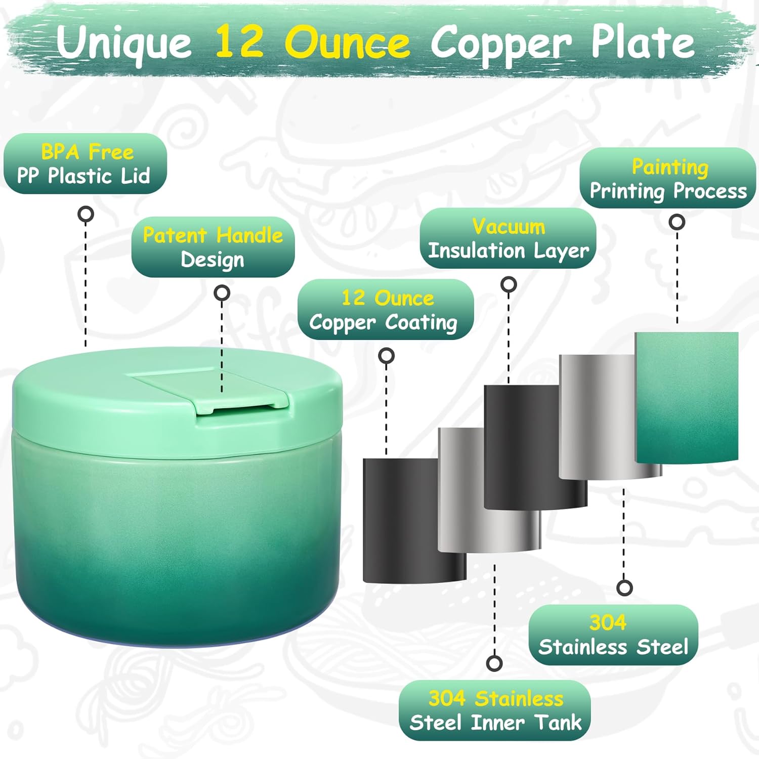 12oz Insulated Vacuum Food Jar with Buckle Lid Wide Mouth Soup Thermo for Hot Food Kids Leakproof Stainless Steel Lunch Container (Gradient Green, 12OZ)