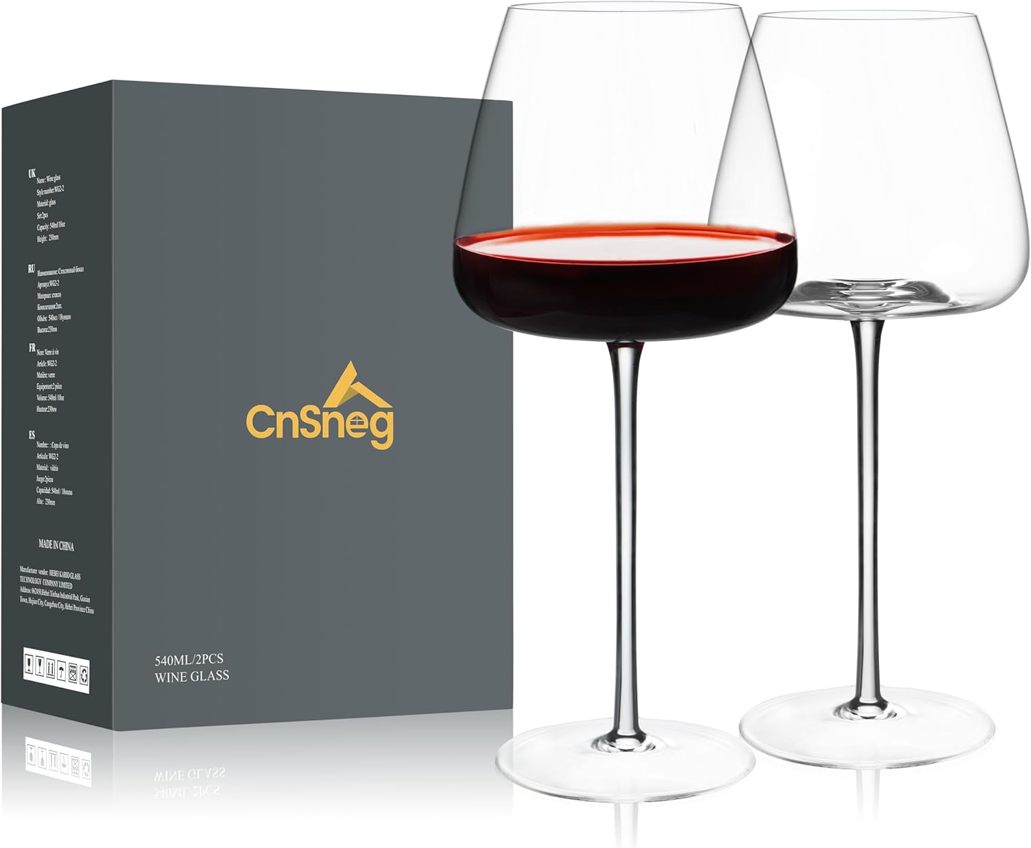Red Wine Glasses Set of 2, Hand Blown Crystal Wine Glass 18OZ, Premium White Wine Glasses for Wedding, Christmas