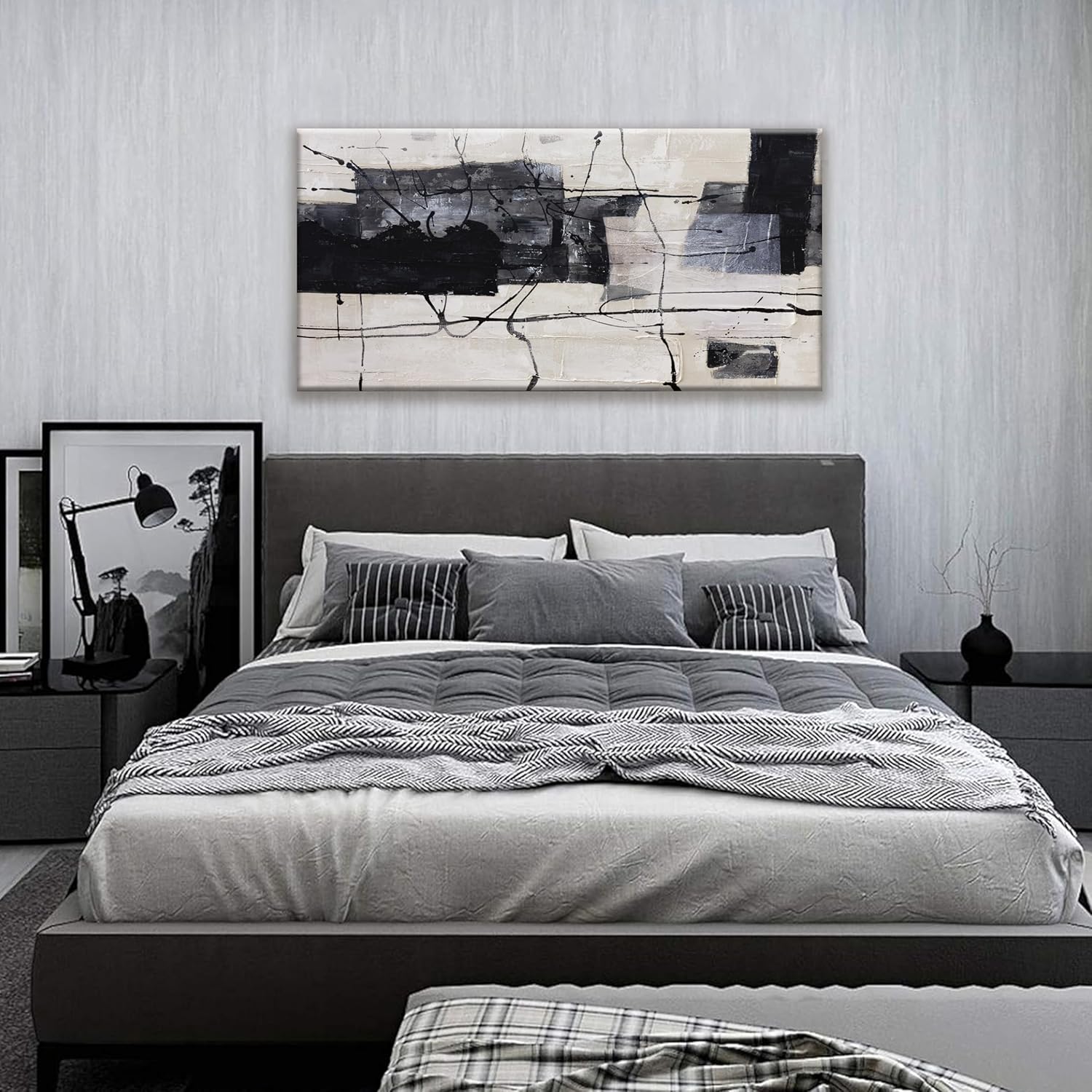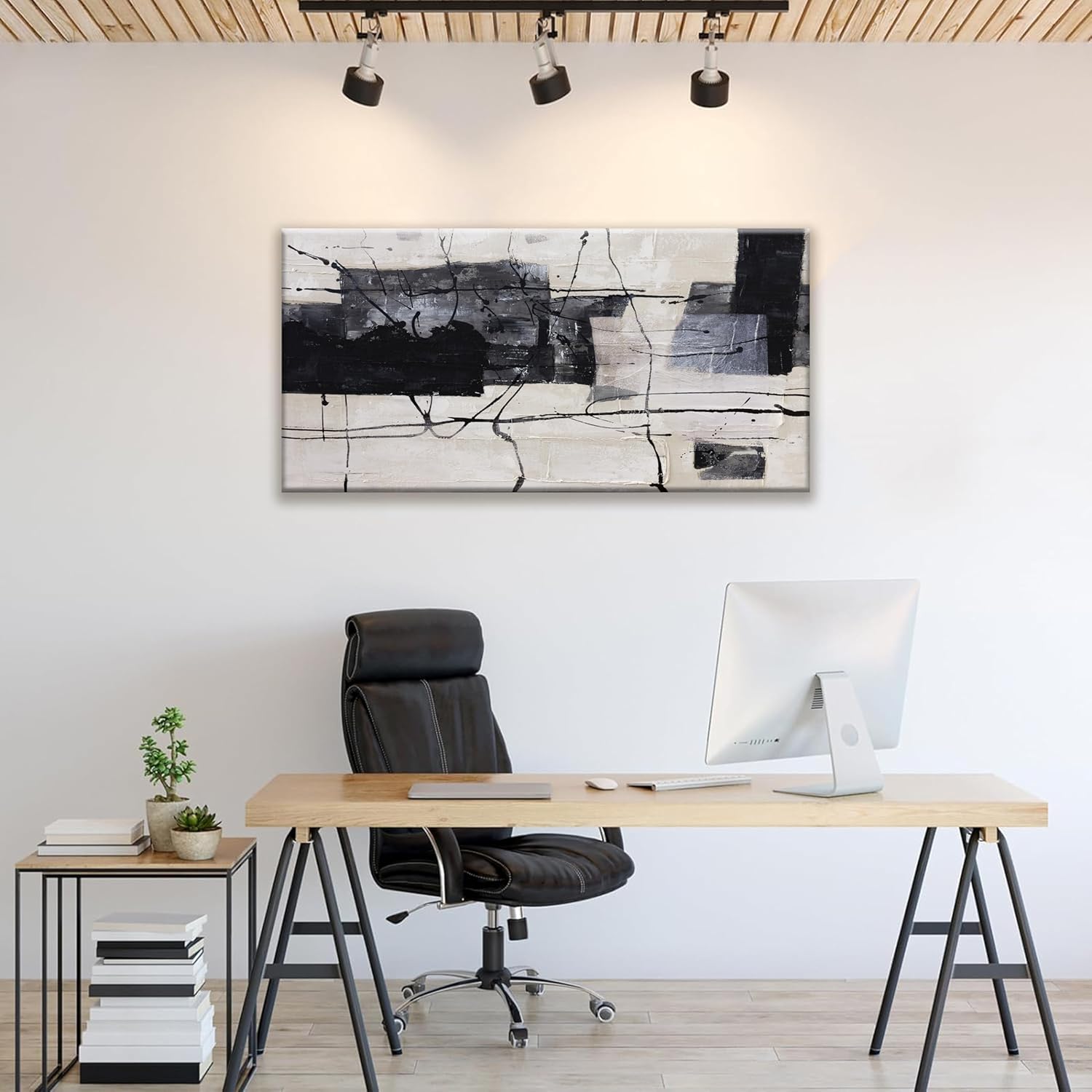 Black Abstract Wall Art prints Decor Grunge Room Decor Art Canvas Wall Decoration 24" x 48" Painting Black And White Artwork for Bedroom Home Office Dining Room Decor