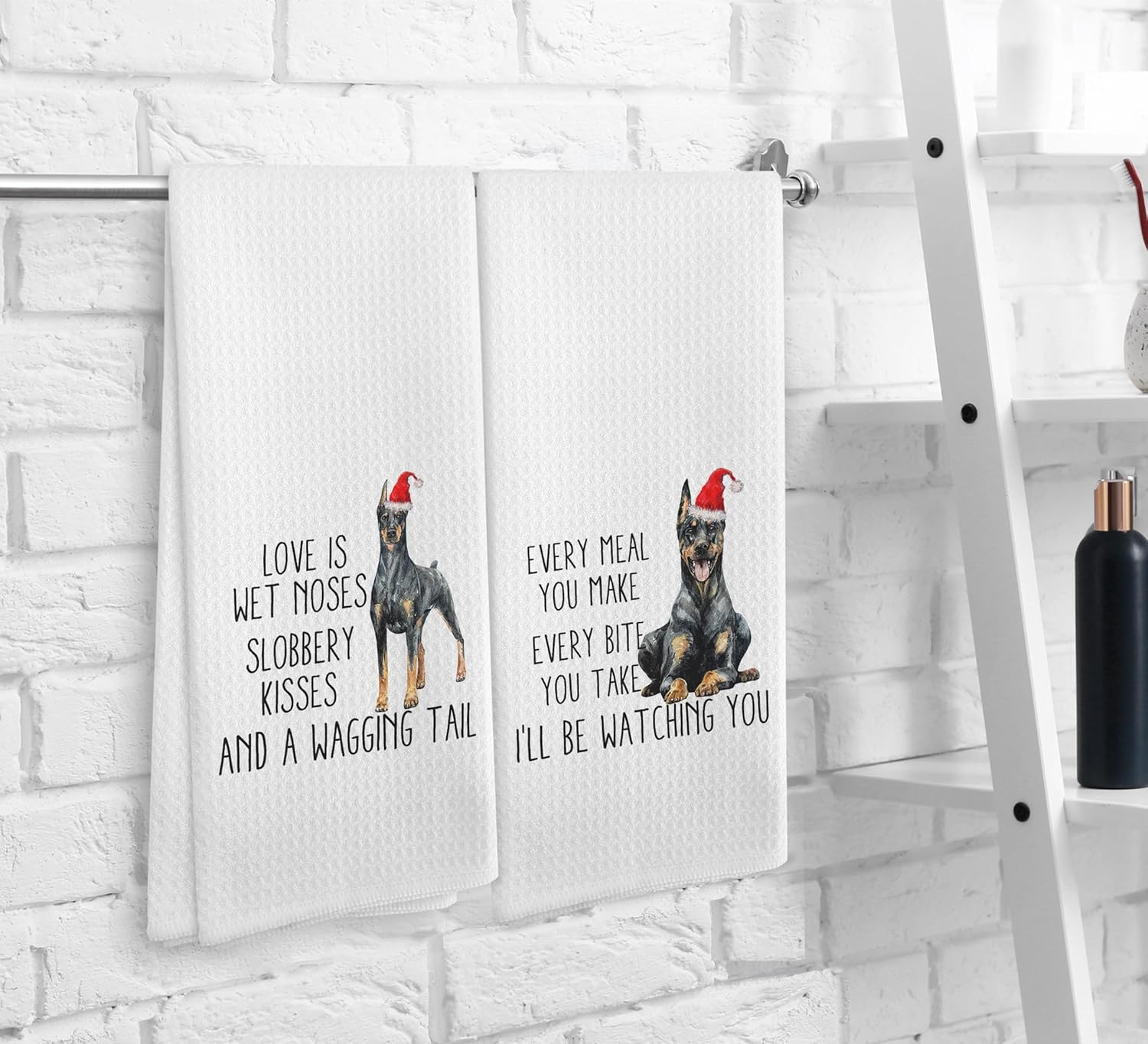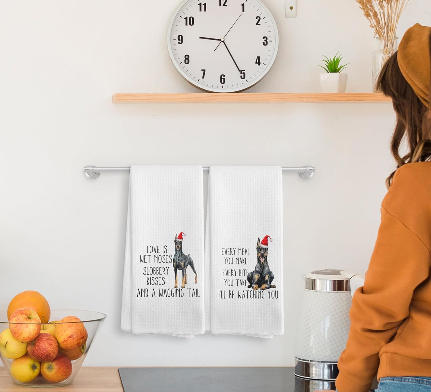 Funny Christmas Doberman Kitchen Towels and Dishcloths Set of 2, Dog Ornament, Decor, Gifts for Women Dog Lovers, Accessories, 1624 Inches