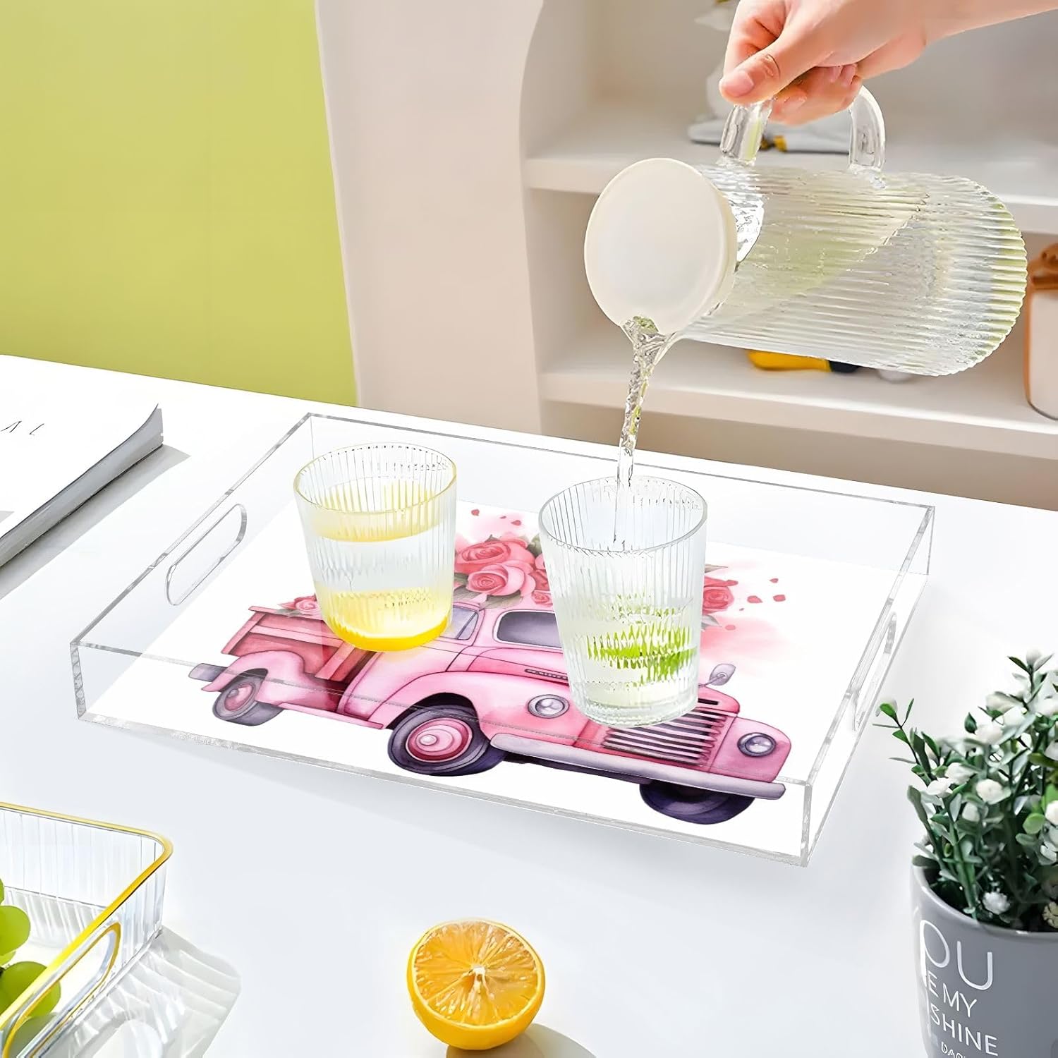 • 【Decorative Tray】15.7*11.8*1.9 inch: The plastic tray is made of thickened acrylic, it is sturdy and durable.