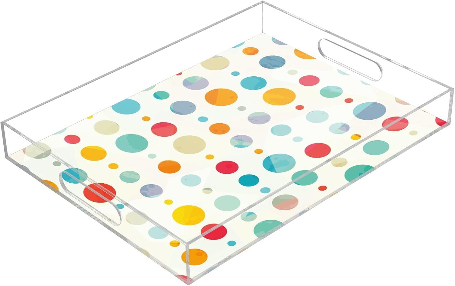 Acrylic Serving Tray with Handles Spill Proof Kitchen Storage Tray Clear Decorative Tray Makeup Drawer Organizer Storage Tray for Bathroom Living Room Ottoman 15.7x11.8Inches