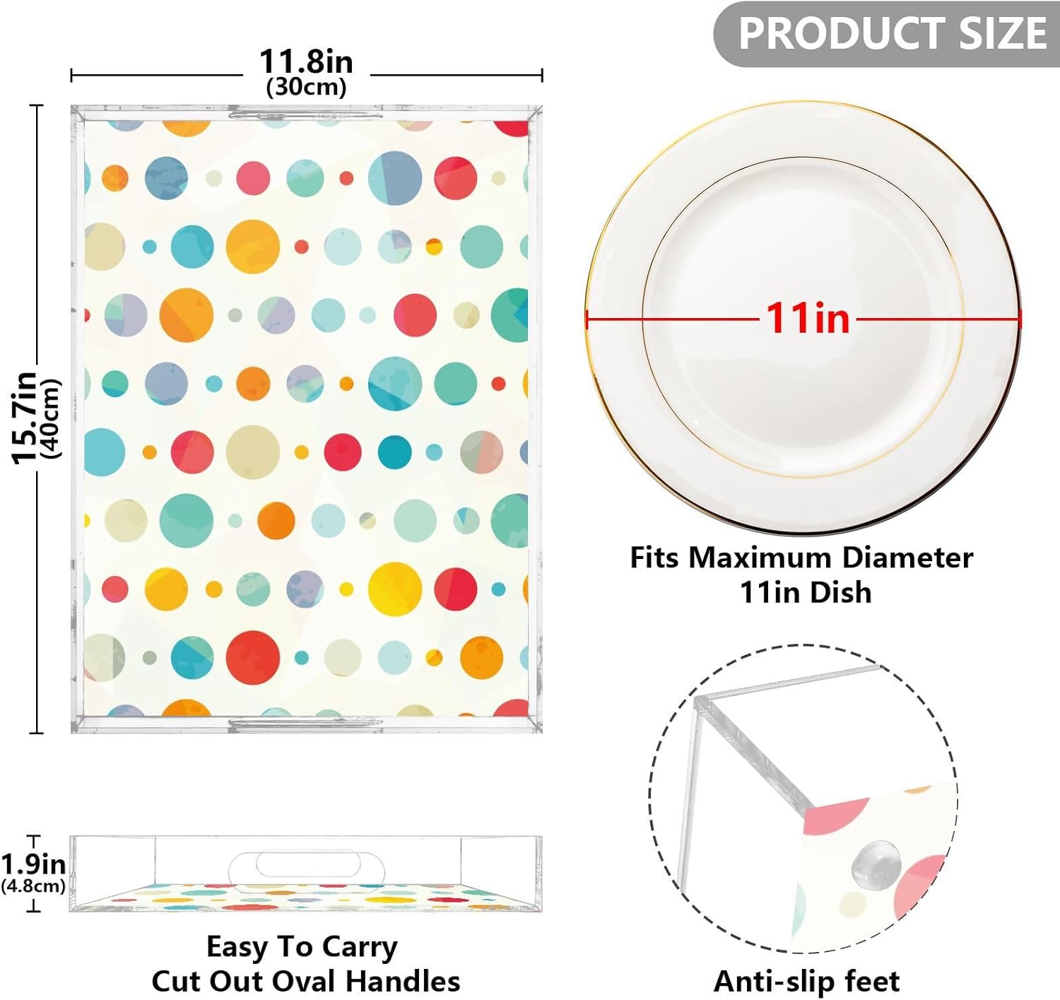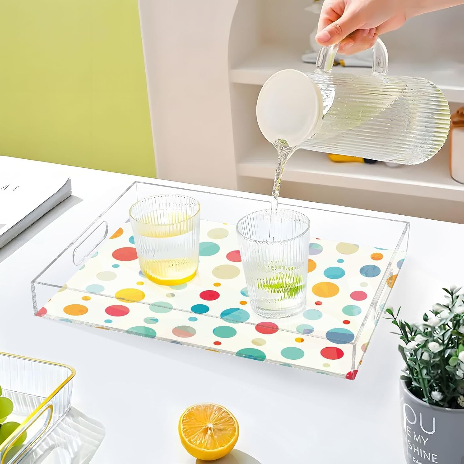 • Premium Acrylic Material: The acrylic serving tray made from durable acrylic with a smooth edge design to ensure safe handling, while the spill-proof design helps keep your home tidy