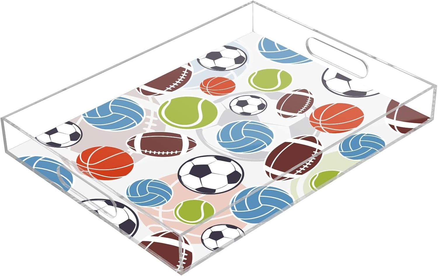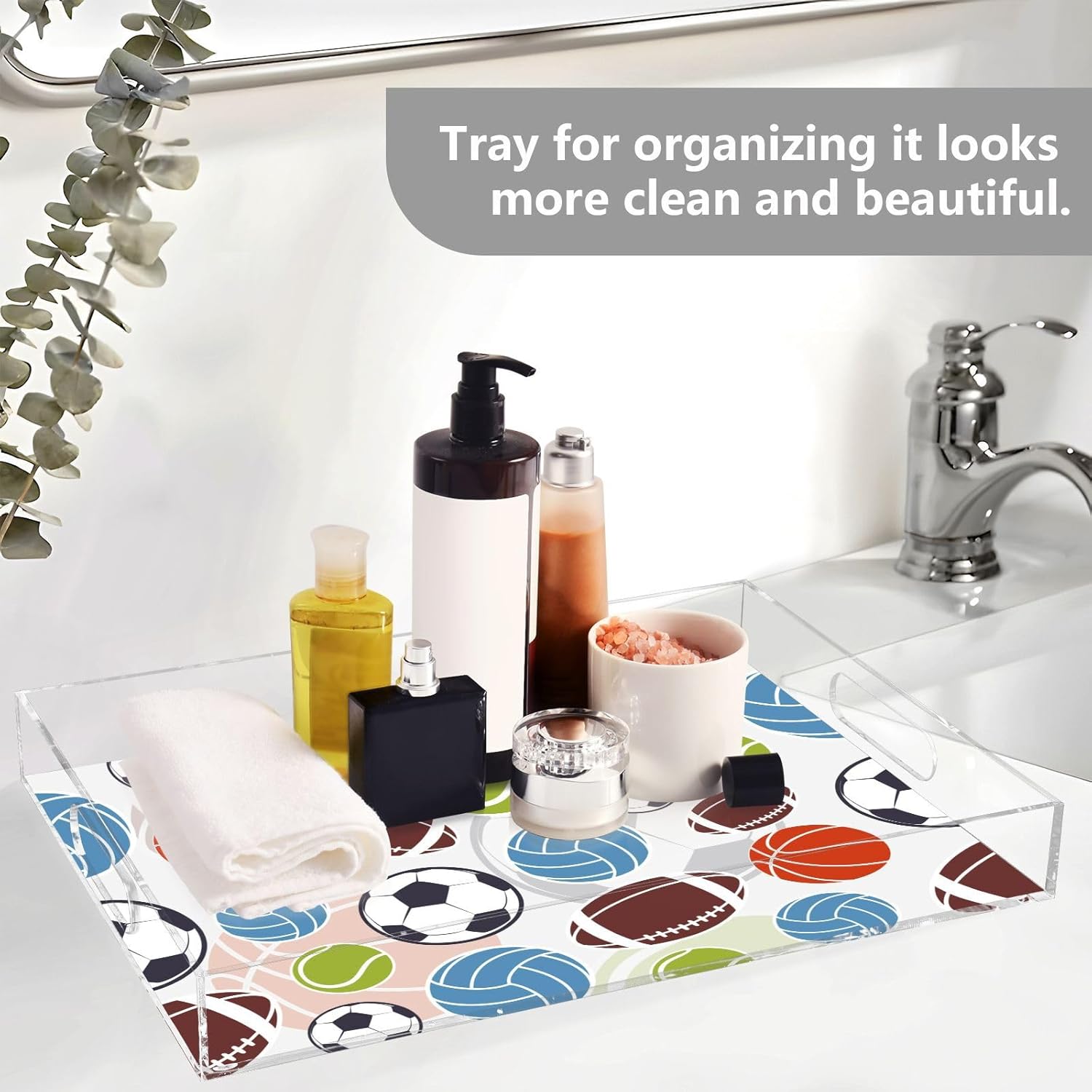 Acrylic Serving Tray with Handles Spill Proof Kitchen Storage Tray Clear Decorative Tray Makeup Drawer Organizer Storage Tray for Bathroom Living Room Ottoman 15.7x11.8Inches