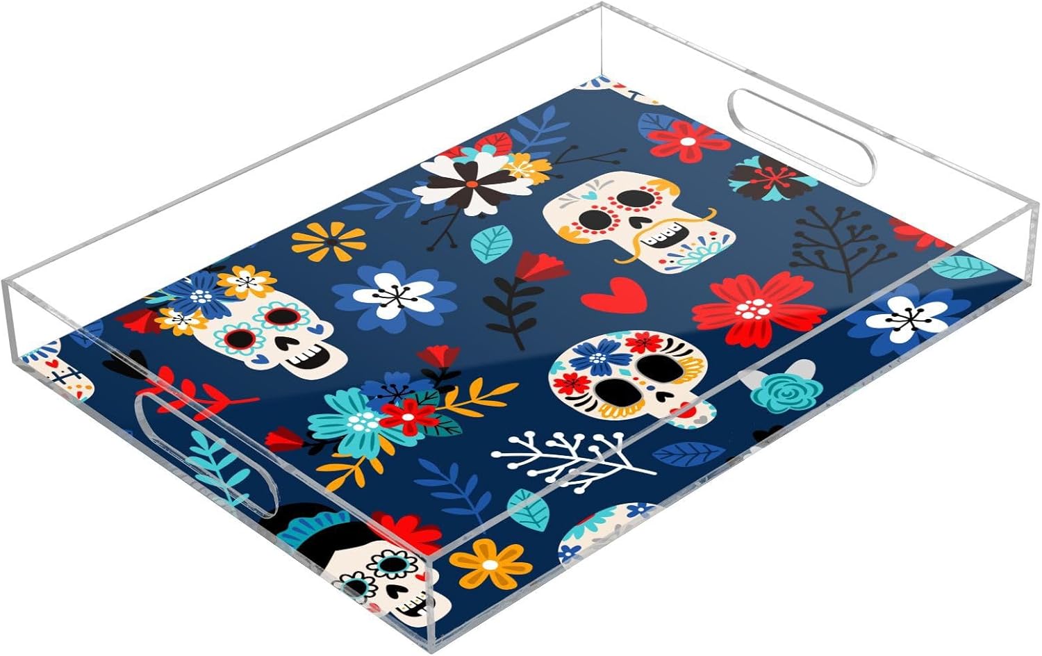 Acrylic Serving Tray with Handles Spill Proof Kitchen Storage Tray Clear Decorative Tray Makeup Drawer Organizer Storage Tray for Bathroom Living Room Ottoman 15.7x11.8Inches