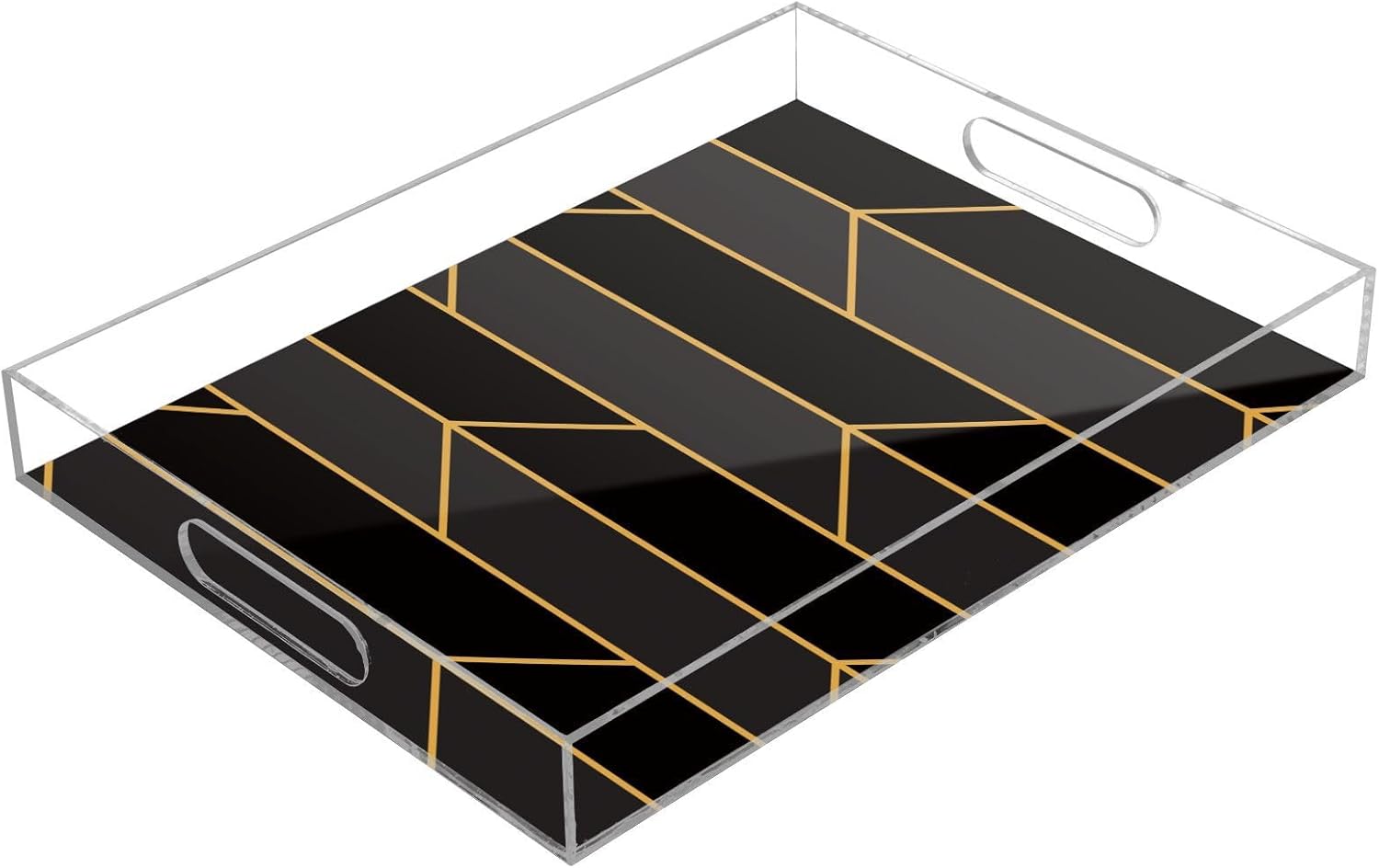 Acrylic Serving Tray with Handles Spill Proof Kitchen Storage Tray Clear Decorative Tray Makeup Drawer Organizer Storage Tray for Bathroom Living Room Ottoman 15.7x11.8Inches