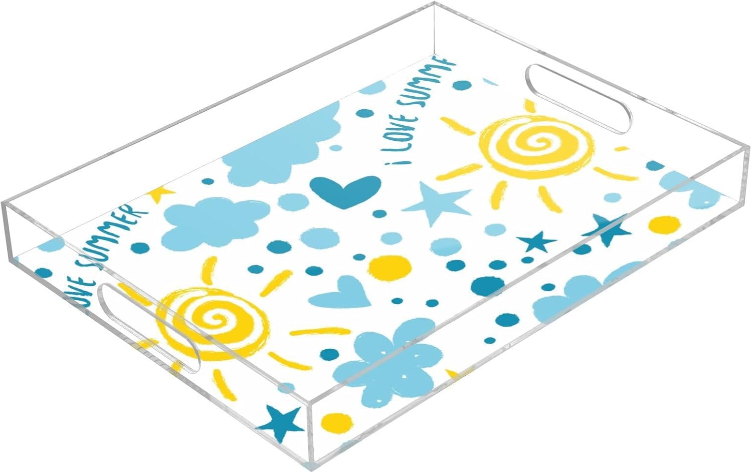 Acrylic Serving Tray with Handles Spill Proof Kitchen Storage Tray Clear Decorative Tray Makeup Drawer Organizer Storage Tray for Bathroom Living Room Ottoman 15.7x11.8Inches