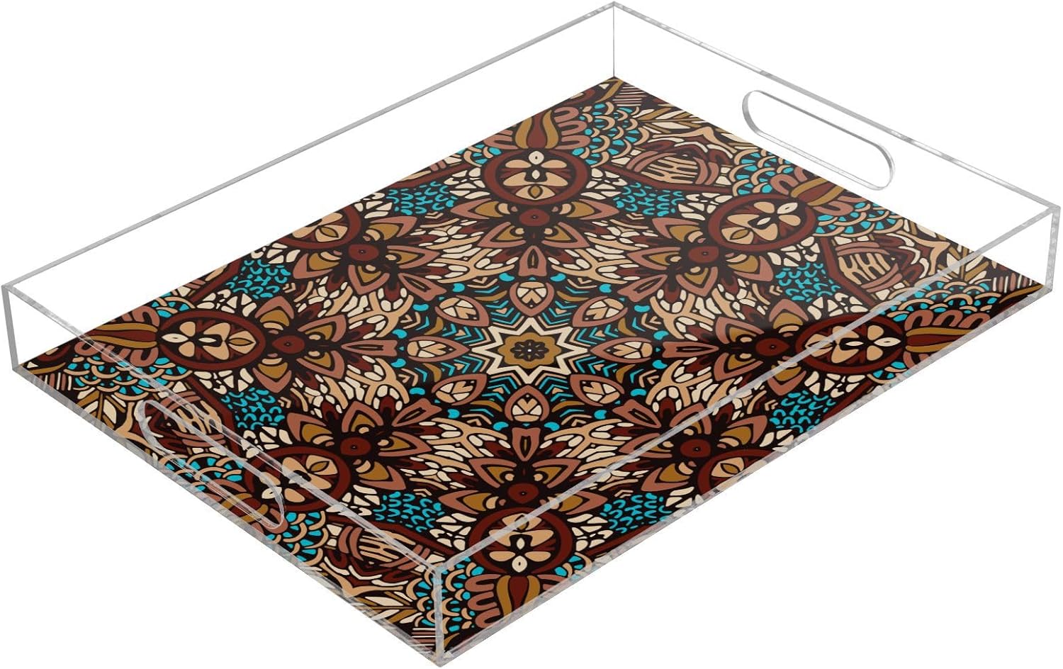 Acrylic Serving Tray with Handles Spill Proof Kitchen Storage Tray Clear Decorative Tray Makeup Drawer Organizer Storage Tray for Bathroom Living Room Ottoman 15.7x11.8Inches