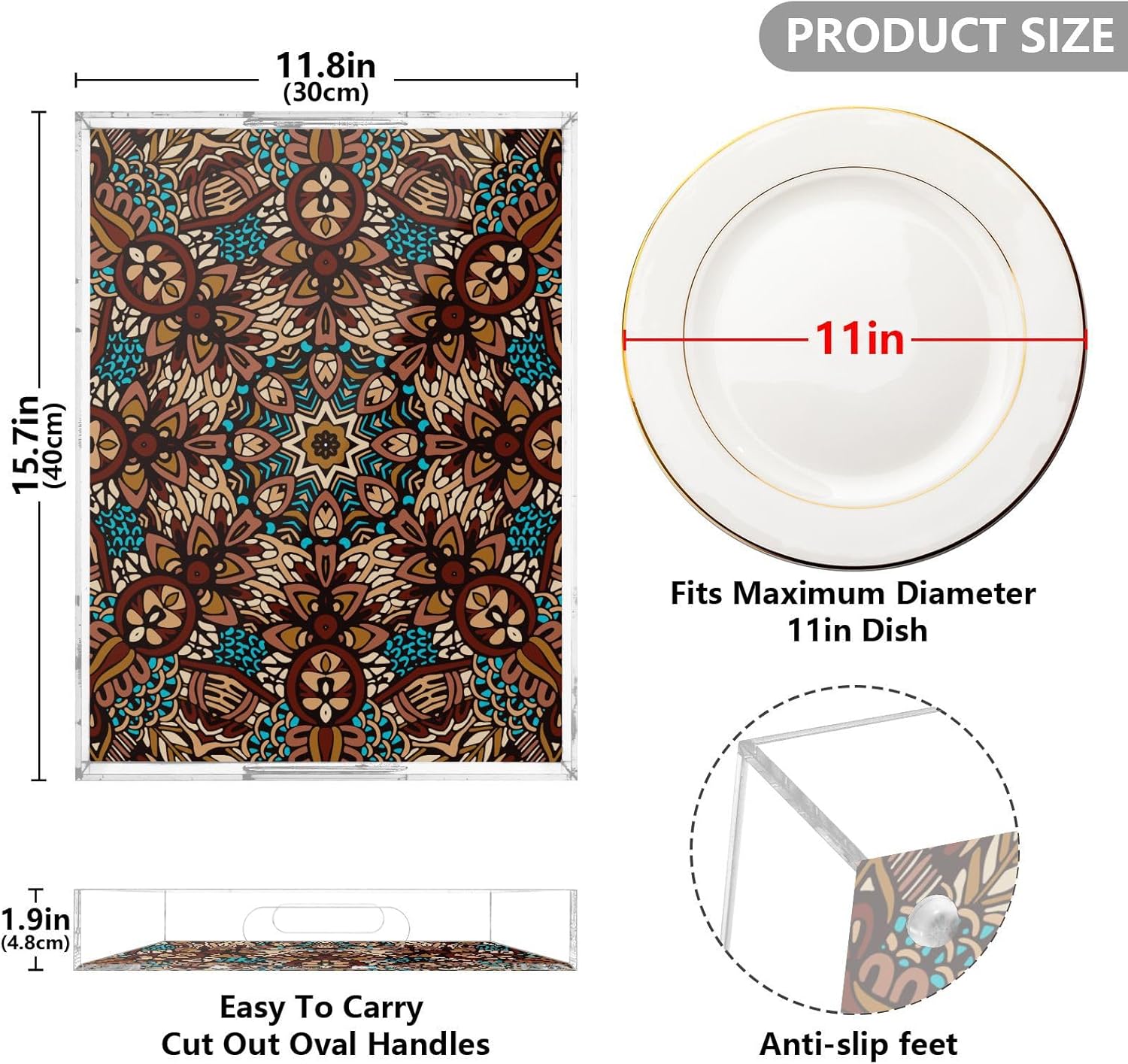 • Size: This serving tray measures 15.7x11.8x1.9 inches, offering ample space for serving food, organizing items, or adding a decorative touch to your home