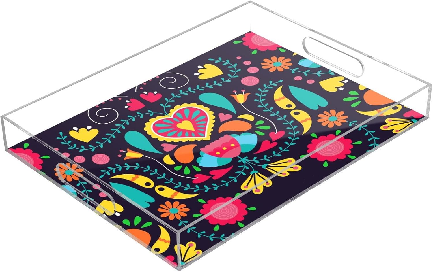 Acrylic Serving Tray with Handles Spill Proof Kitchen Storage Tray Clear Decorative Tray Makeup Drawer Organizer Storage Tray for Bathroom Living Room Ottoman 15.7x11.8Inches