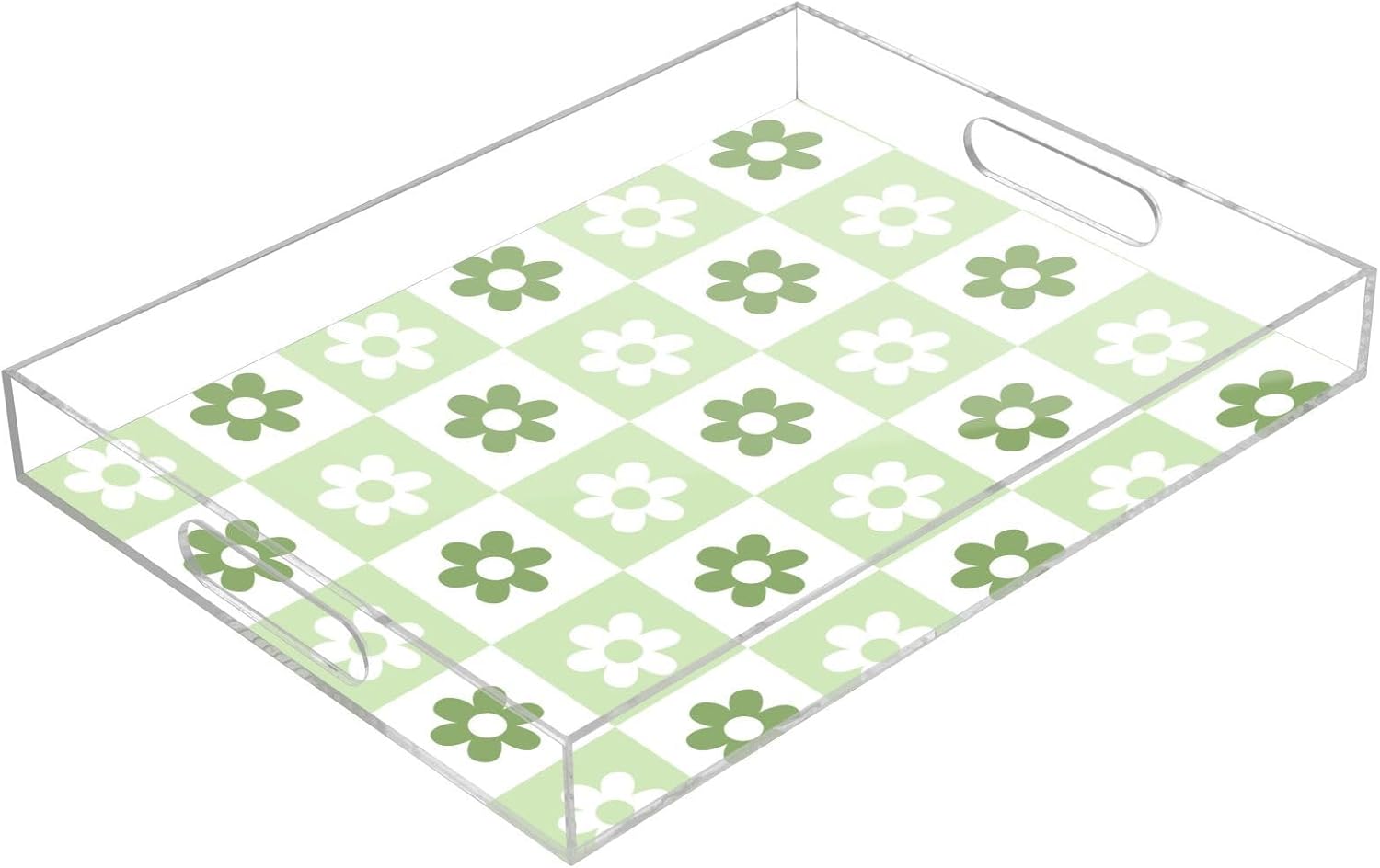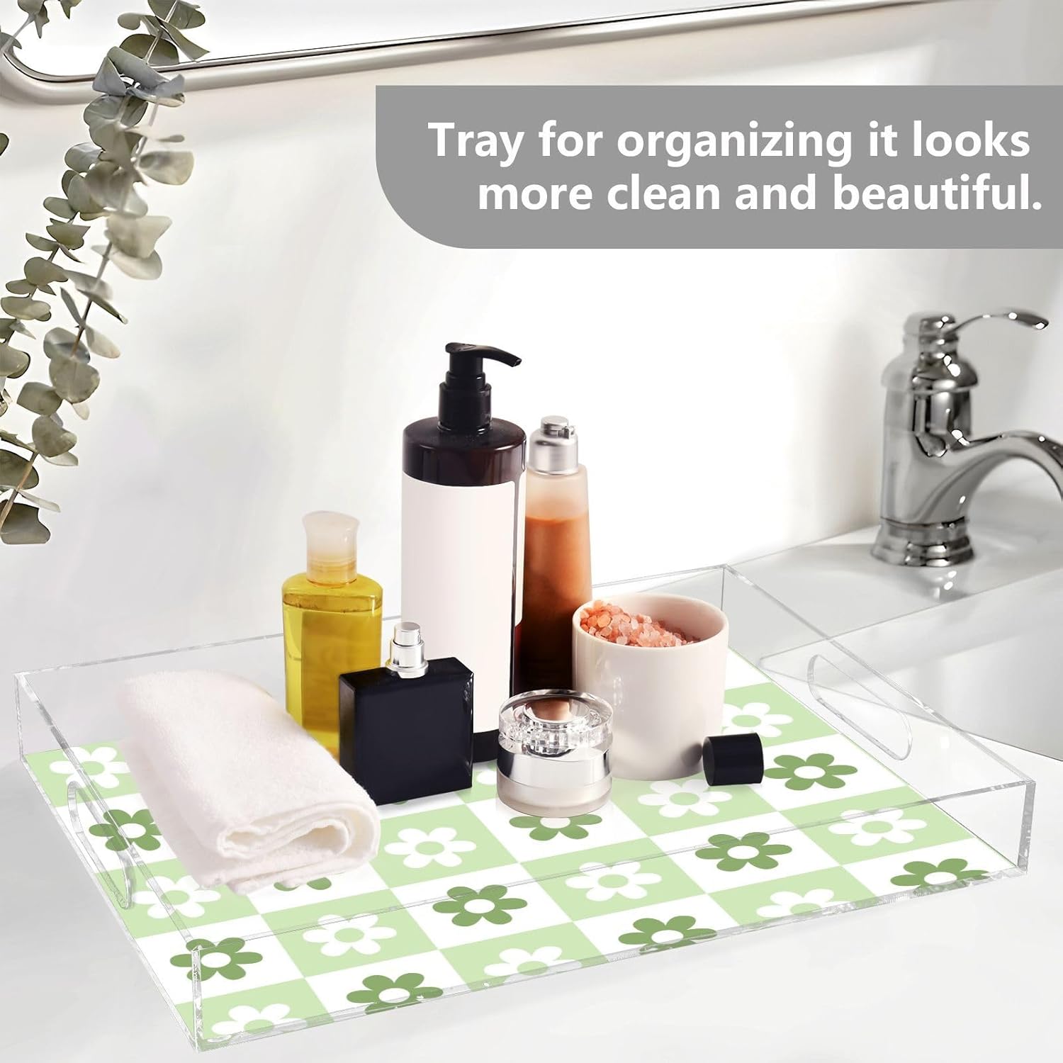 Acrylic Serving Tray with Handles Spill Proof Kitchen Storage Tray Clear Decorative Tray Makeup Drawer Organizer Storage Tray for Bathroom Living Room Ottoman 15.7x11.8Inches