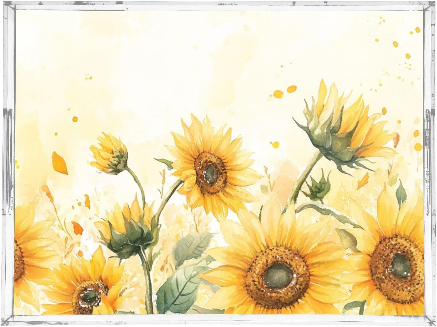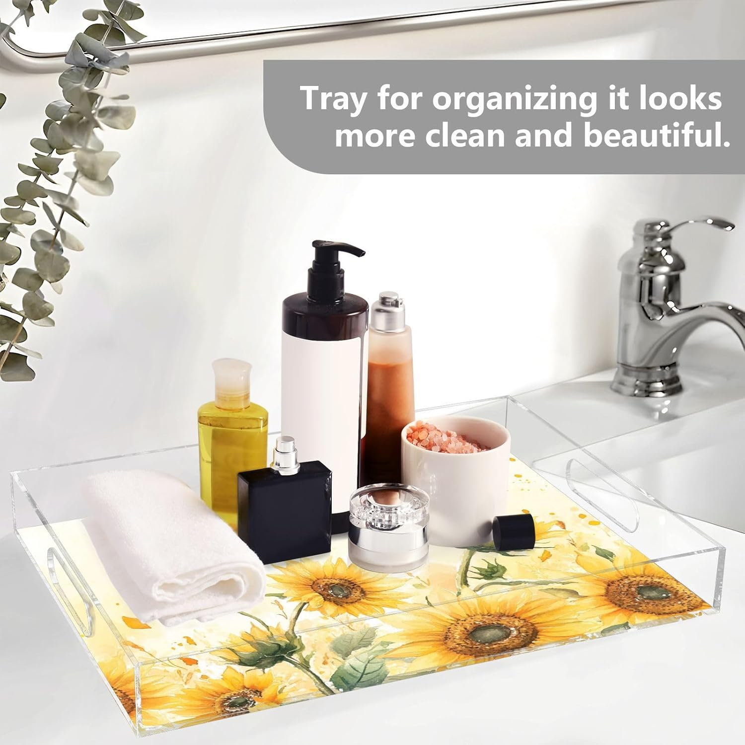 Acrylic Serving Tray with Handles Spill Proof Kitchen Storage Tray Clear Decorative Tray Makeup Drawer Organizer Storage Tray for Bathroom Living Room Ottoman 15.7x11.8Inches