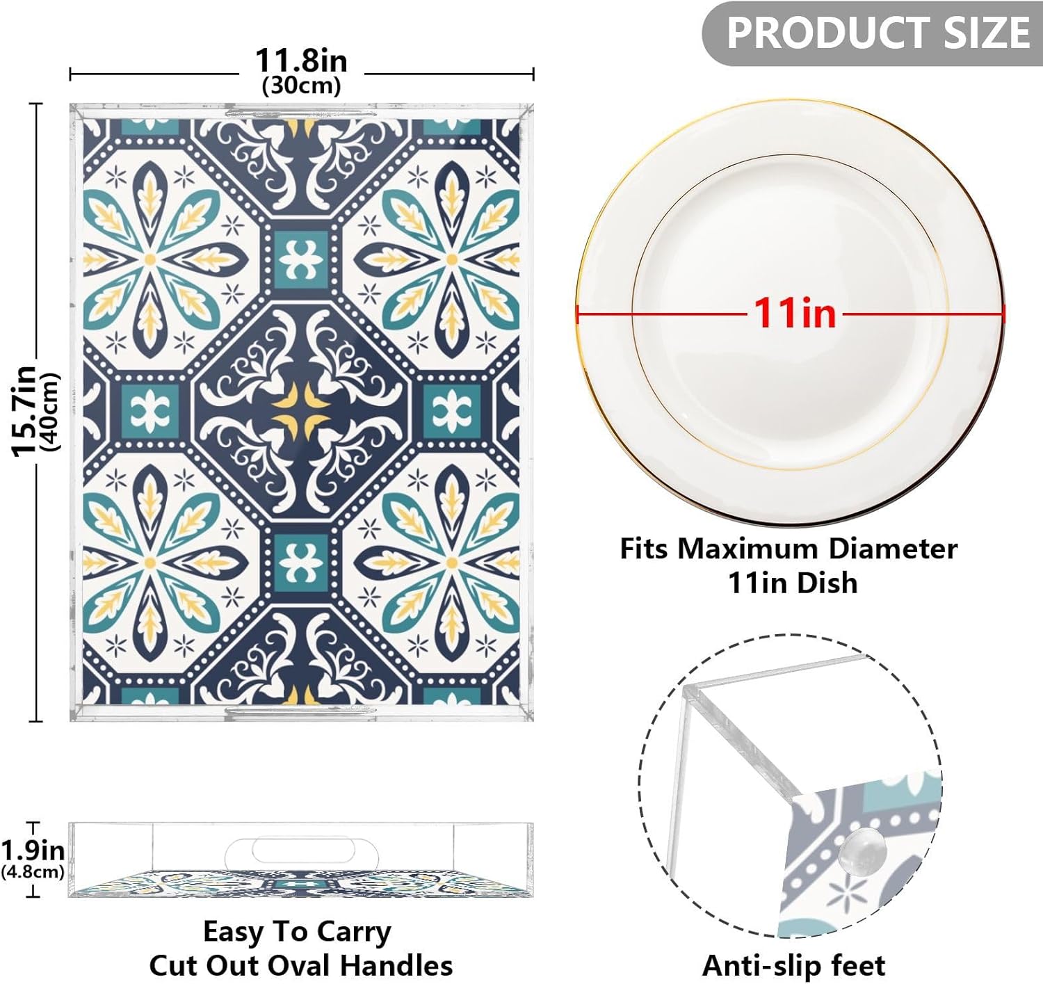 • Size: This serving tray measures 15.7x11.8x1.9 inches, offering ample space for serving food, organizing items, or adding a decorative touch to your home