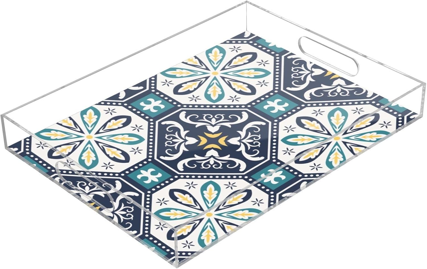 Acrylic Serving Tray with Handles Spill Proof Kitchen Storage Tray Clear Decorative Tray Makeup Drawer Organizer Storage Tray for Bathroom Living Room Ottoman 15.7x11.8Inches