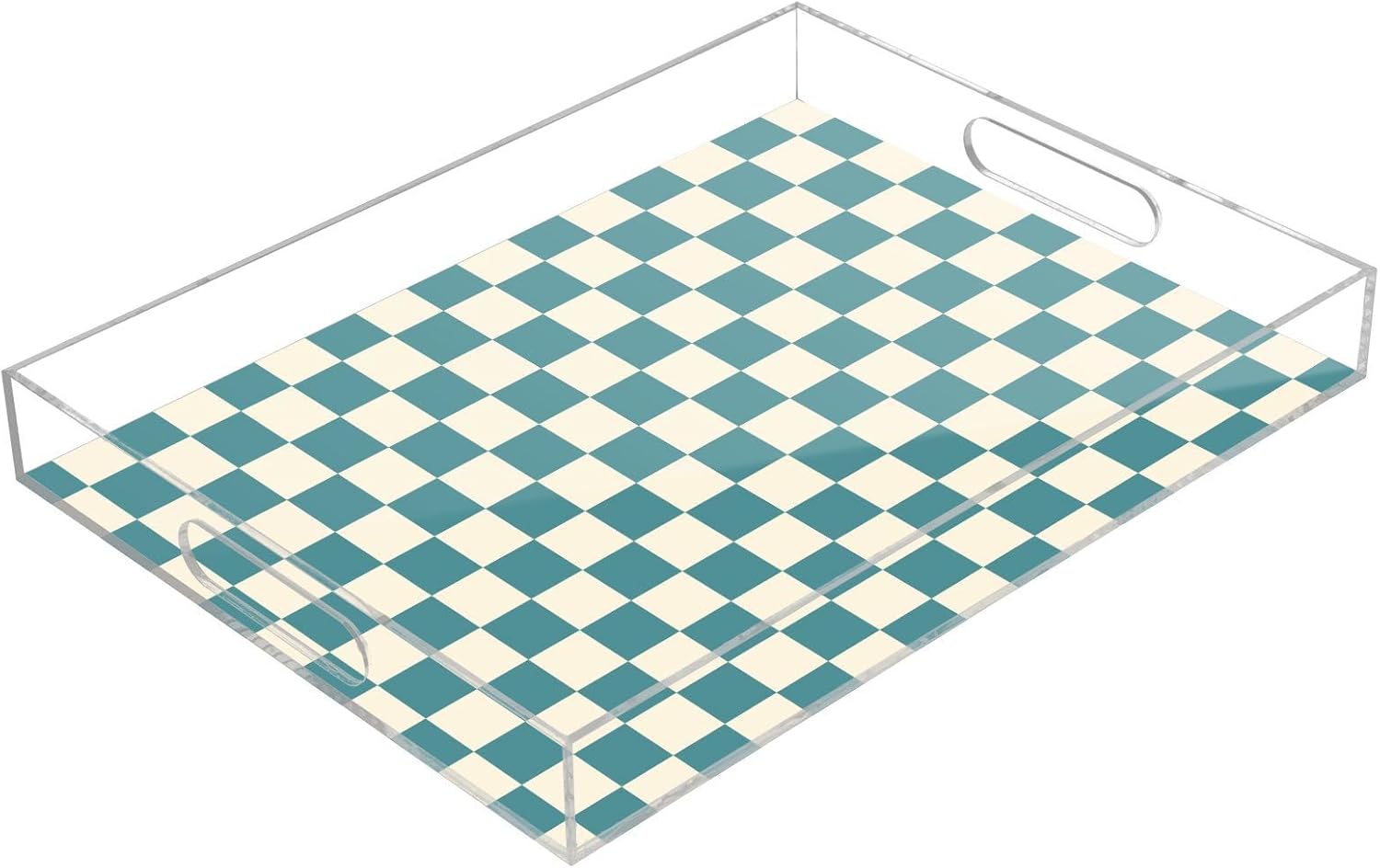 Acrylic Serving Tray with Handles Spill Proof Kitchen Storage Tray Clear Decorative Tray Makeup Drawer Organizer Storage Tray for Bathroom Living Room Ottoman 15.7x11.8Inches