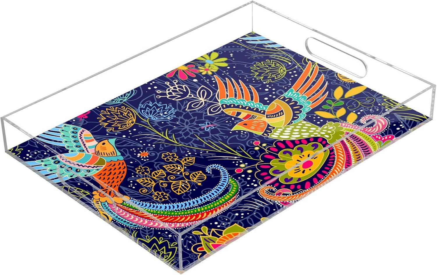 Acrylic Serving Tray with Handles Spill Proof Kitchen Storage Tray Clear Decorative Tray Makeup Drawer Organizer Storage Tray for Bathroom Living Room Ottoman 15.7x11.8Inches