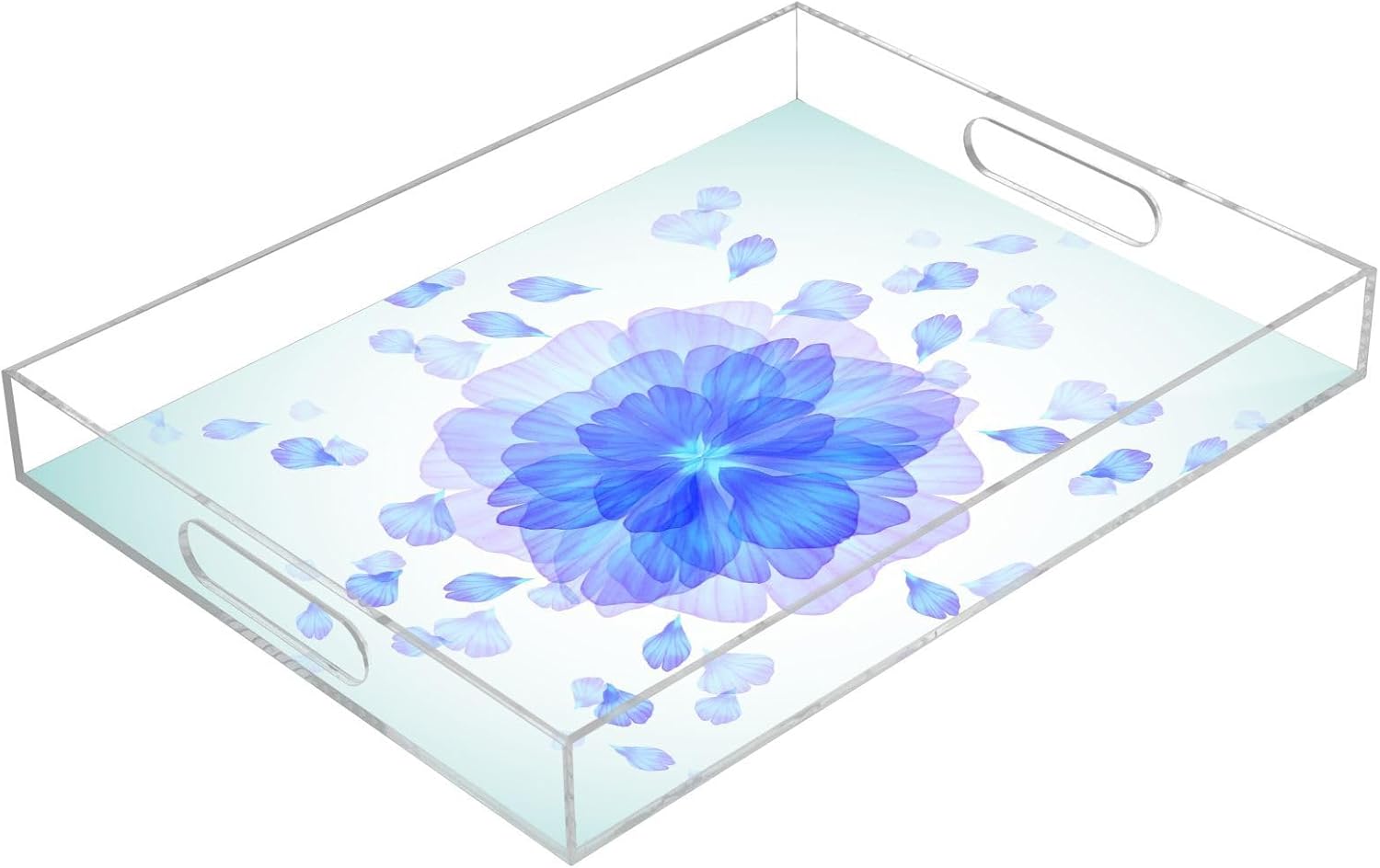 Acrylic Serving Tray with Handles Spill Proof Kitchen Storage Tray Clear Decorative Tray Makeup Drawer Organizer Storage Tray for Bathroom Living Room Ottoman 15.7x11.8Inches