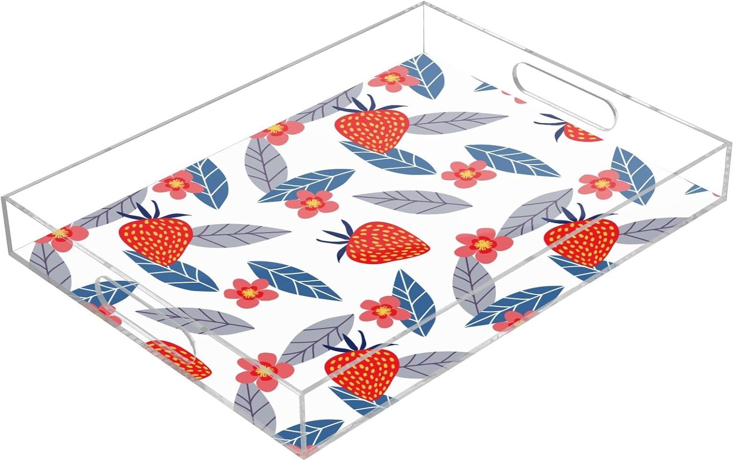 Acrylic Serving Tray with Handles Spill Proof Kitchen Storage Tray Clear Decorative Tray Makeup Drawer Organizer Storage Tray for Bathroom Living Room Ottoman 15.7x11.8Inches