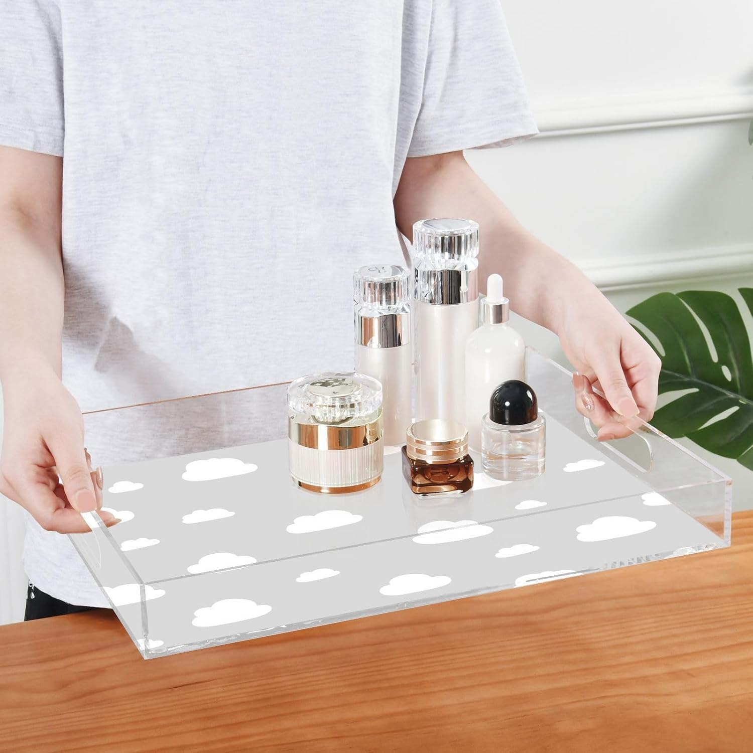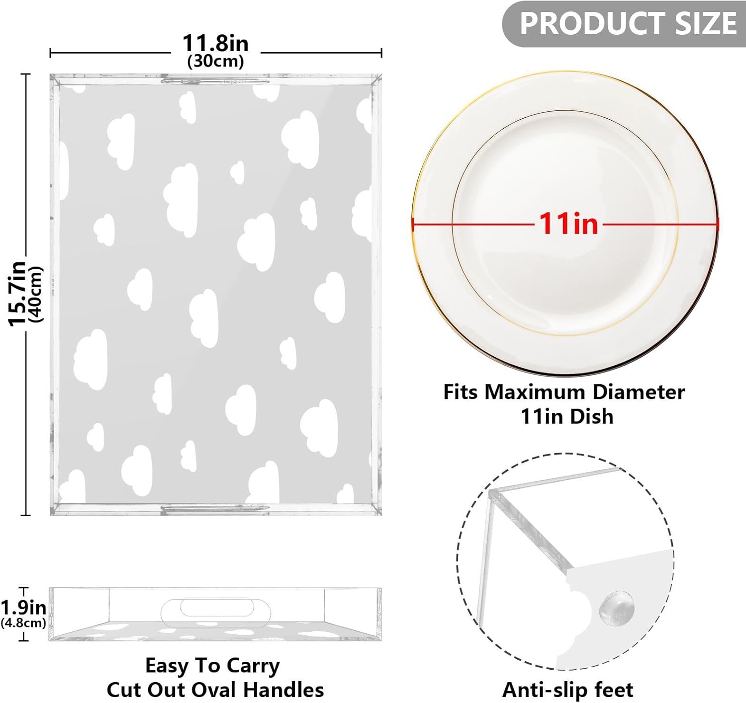• Premium Acrylic Material: The acrylic serving tray made from durable acrylic with a smooth edge design to ensure safe handling, while the spill-proof design helps keep your home tidy